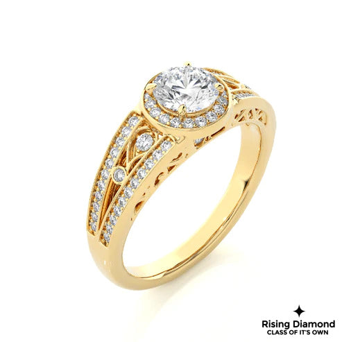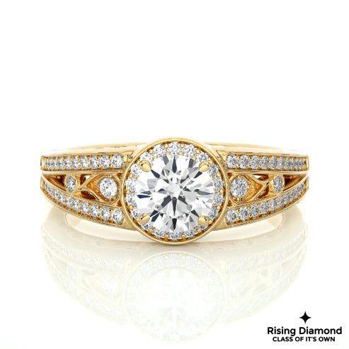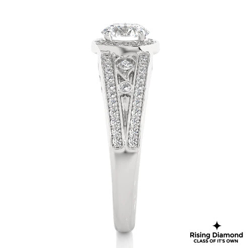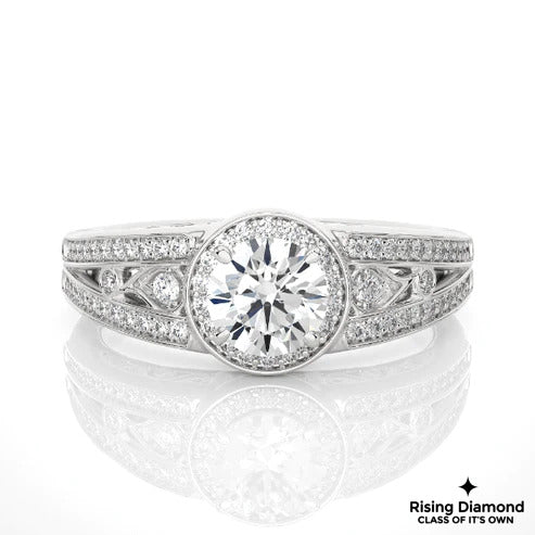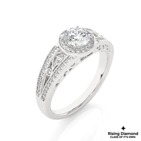1.02 CT Round Cut F/VS1 Lab Grown Diamond Ring in Pave Setting