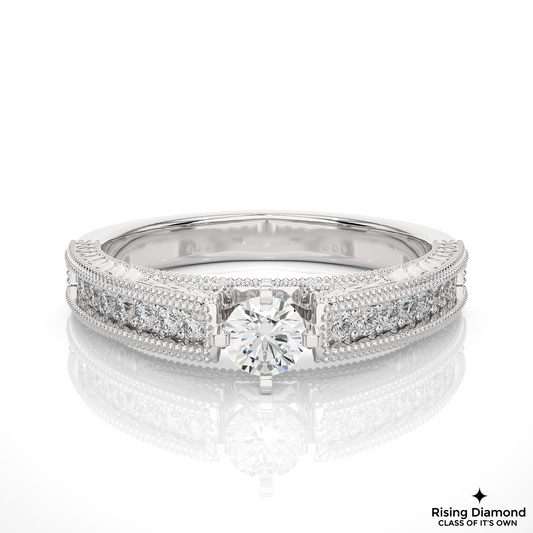 1.01 CT Round Cut Lab Grown Diamond Engagement Ring With Chanel Setting in mil-Grain Shank