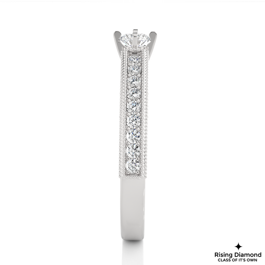 1.01 Round Cut F/VS2 Lab Grown Diamond Engagement Ring in Pave Shank