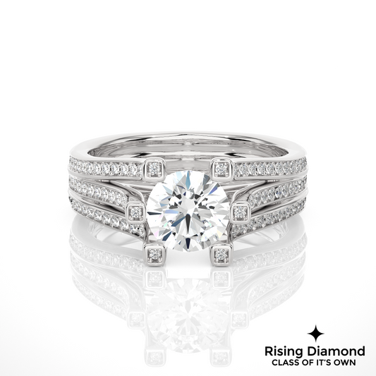 1.00 Ct Round Cut D-VS2 Lab Grown Diamond Cathedral Engagement Ring
