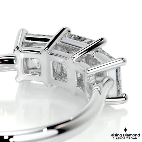 3.8 CTW Princess Cut Colorless Moissanite Three Stone Ring
