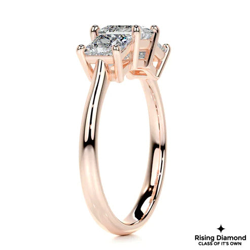1.02 CT E/VS2 Princess Cut Lab Grown Diamond Three Stone Ring