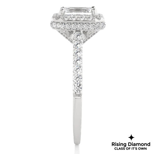 1.8 Ct Emerald Cut F/VS2 Lab Grown Diamond Hidden Halo Engagement Ring