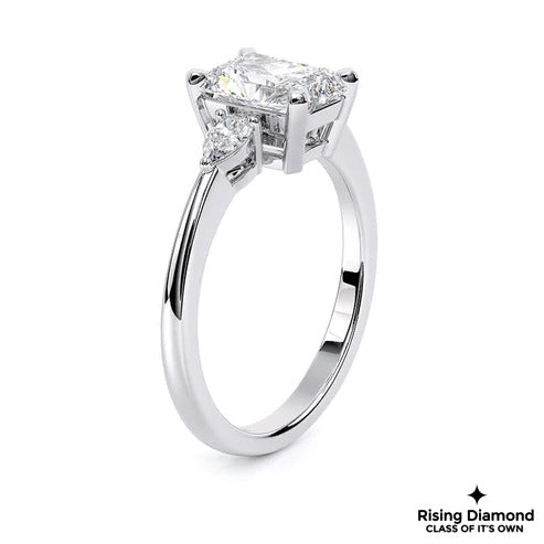 1.05 CT F/VS2 Radiant Cut Lab Grown Diamond Three Stone Ring