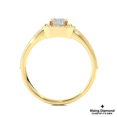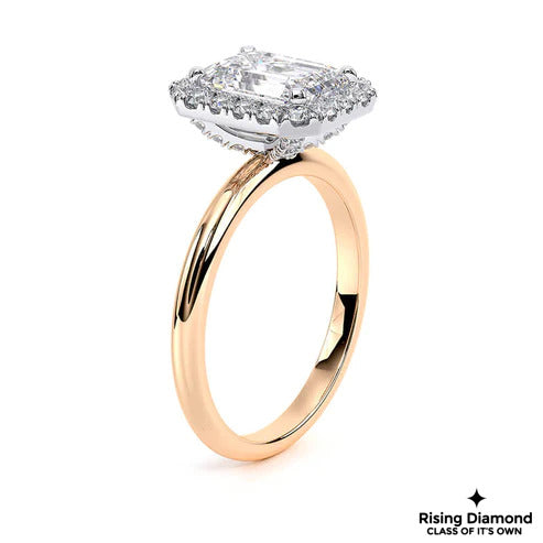 1.5 Ct Emerald Cut G-VS1 Lab Grown Diamond Halo Gold Engagement Ring