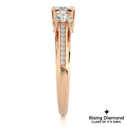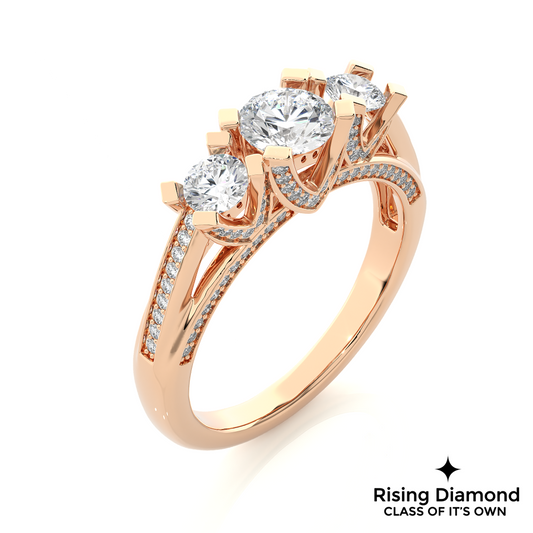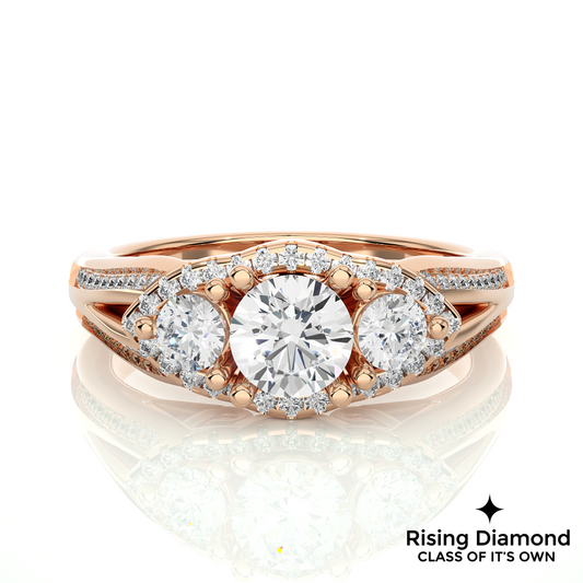 1.03 Ct Round Cut E-VS2 Lab Grown Diamond Three Stone Engagement Ring