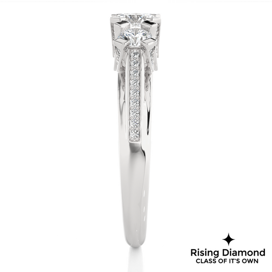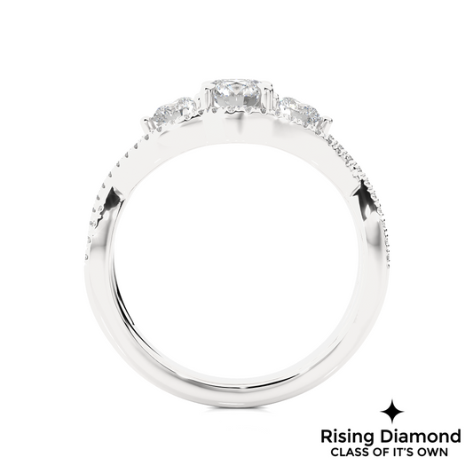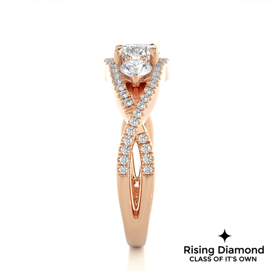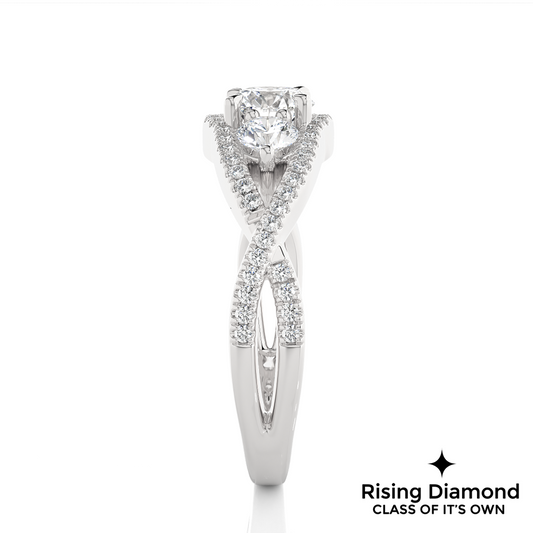 1.03 Ct Round Cut F-VS1 Lab Grown Diamond Engagement Ring in Crossover Shank