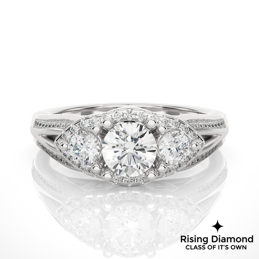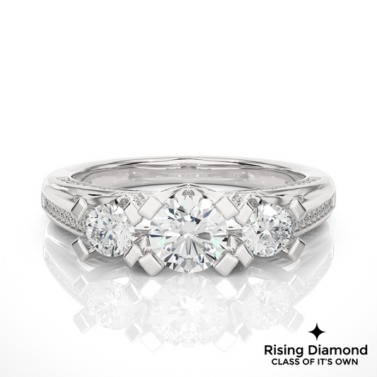 1.0 CT Round E/VS2 Lab Grown Diamond Three Stone Ring