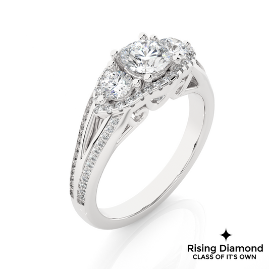 1.01 Ct Round Cut E-VS1 Lab Grown Diamond Three Stone Engagement Ring
