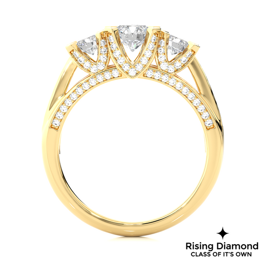 1.06 Ct Round Cut F-VS Lab Grown Diamond Gold Three Stone Ring