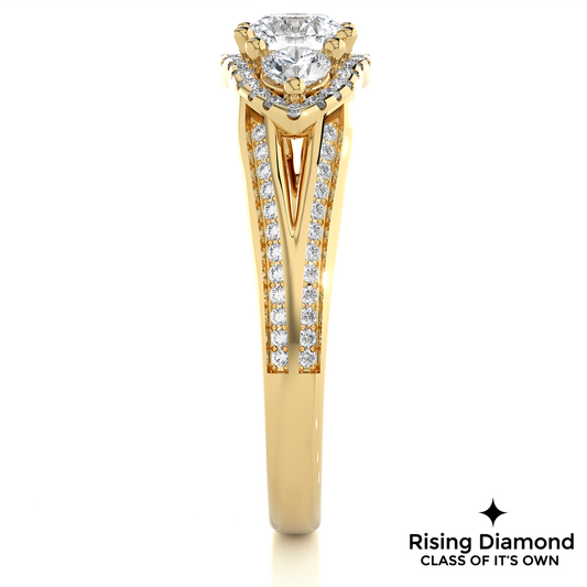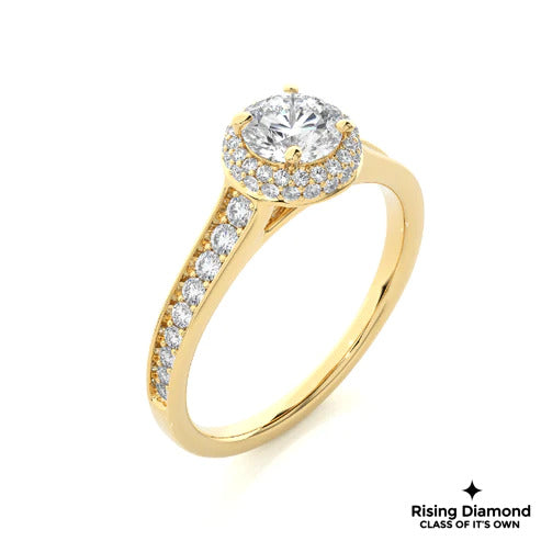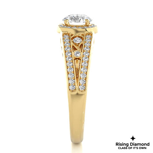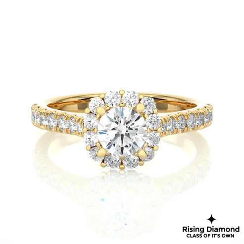 1.01 Ct Round Cut E-VS Lab Grown Diamond Gold Halo Engagement Ring