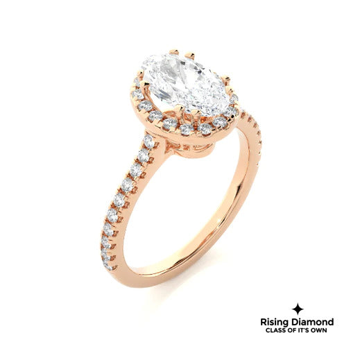 1.05 Ct Oval Cut E-VS1 Lab Grown Diamond Halo Engagement Ring