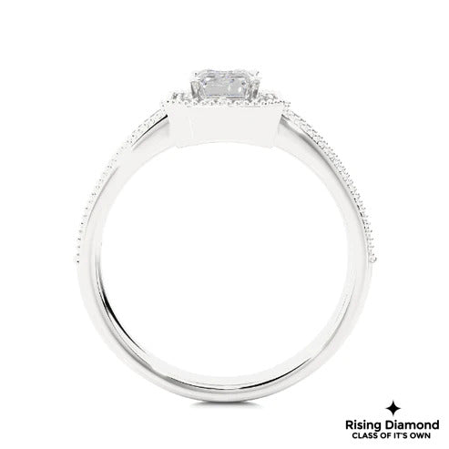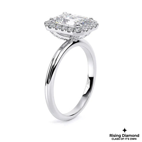 1.39 Ct Emerald Cut E-VS2 Lab Grown Diamond Halo Engagement Ring