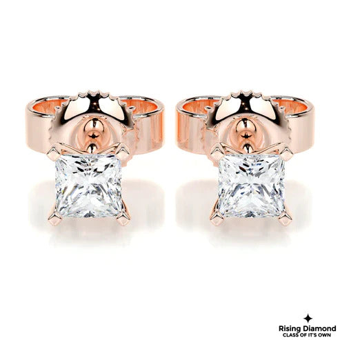 0.5 Ct For Each Princess Cut Colorless Moissanite Studs Earring