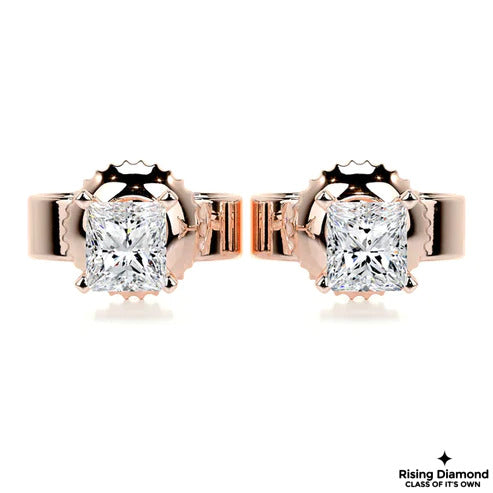 1.0 Ct For Each Princess Cut Colorless Moissanite Stud Earring