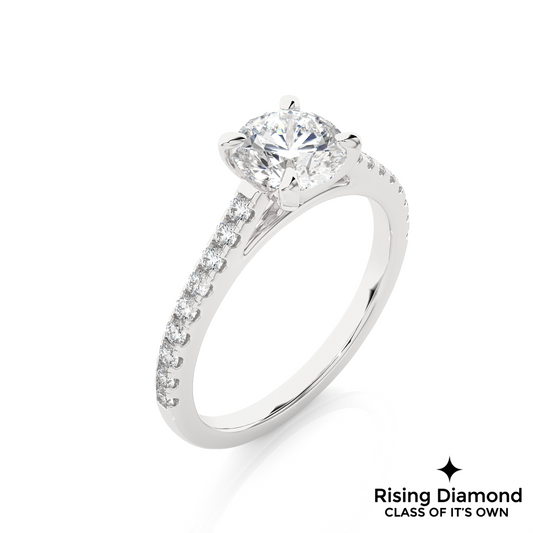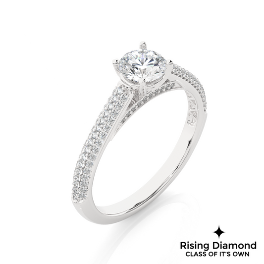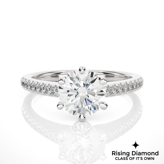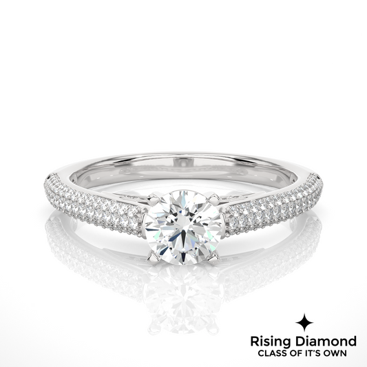 1.58 Ct Round Cut Colorless Moissanite Pave Engagement Ring