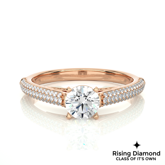 1.02 Ct Round Cut Colorless Moissanite Engagement Ring in Micro Pave Setting