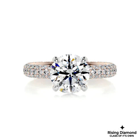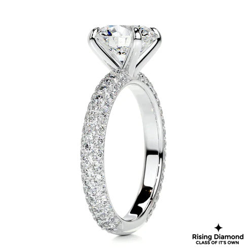 3.0 Ct Round Cut Colorless Moissanite Micro Pave Engagement Ring