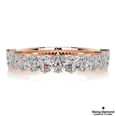 0.85 CTW Marquise and Round Cut Colorless Moissanite Wedding Band