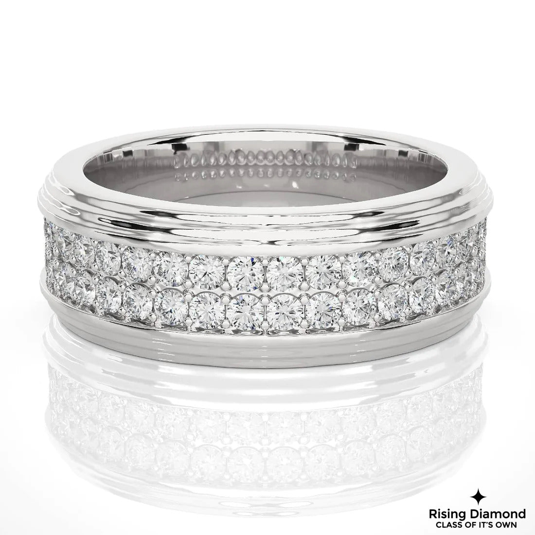 0.85 TCW Round Cut FG/VS Lab Grown Diamond Double Pave Wedding Band