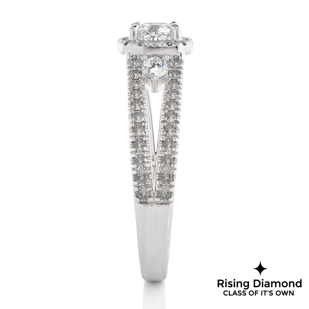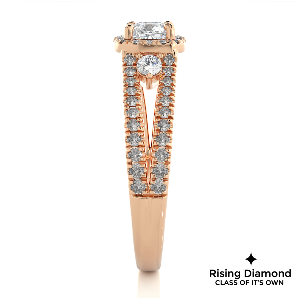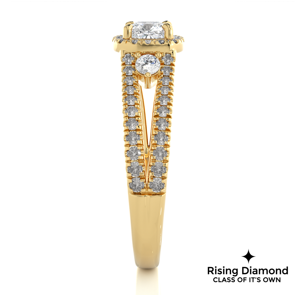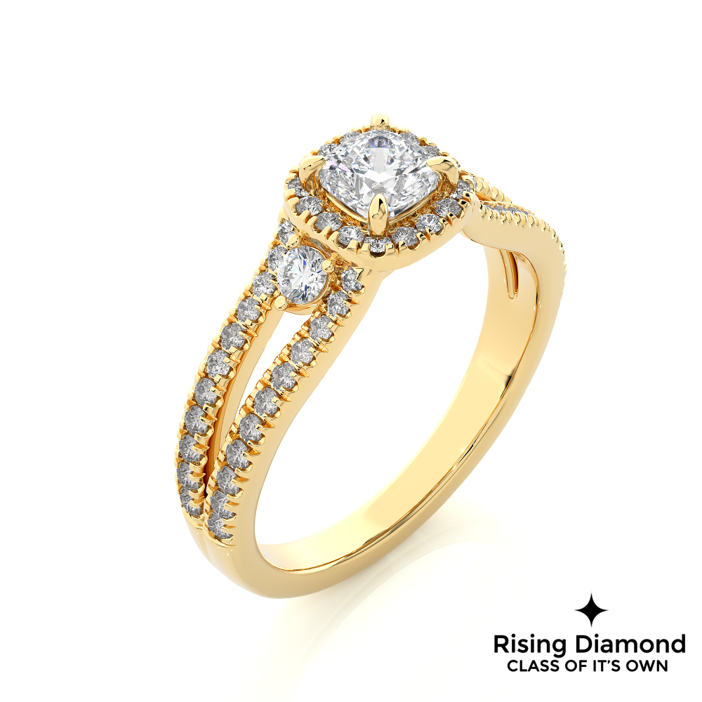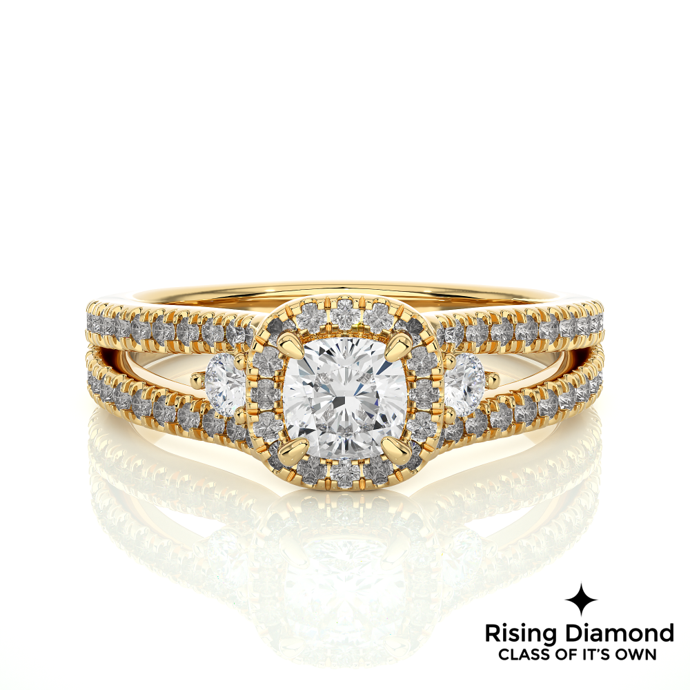 1.01 Ct Cushion Cut E-VS1 Lab Grown Diamond Split Shank Gold Engagement Ring