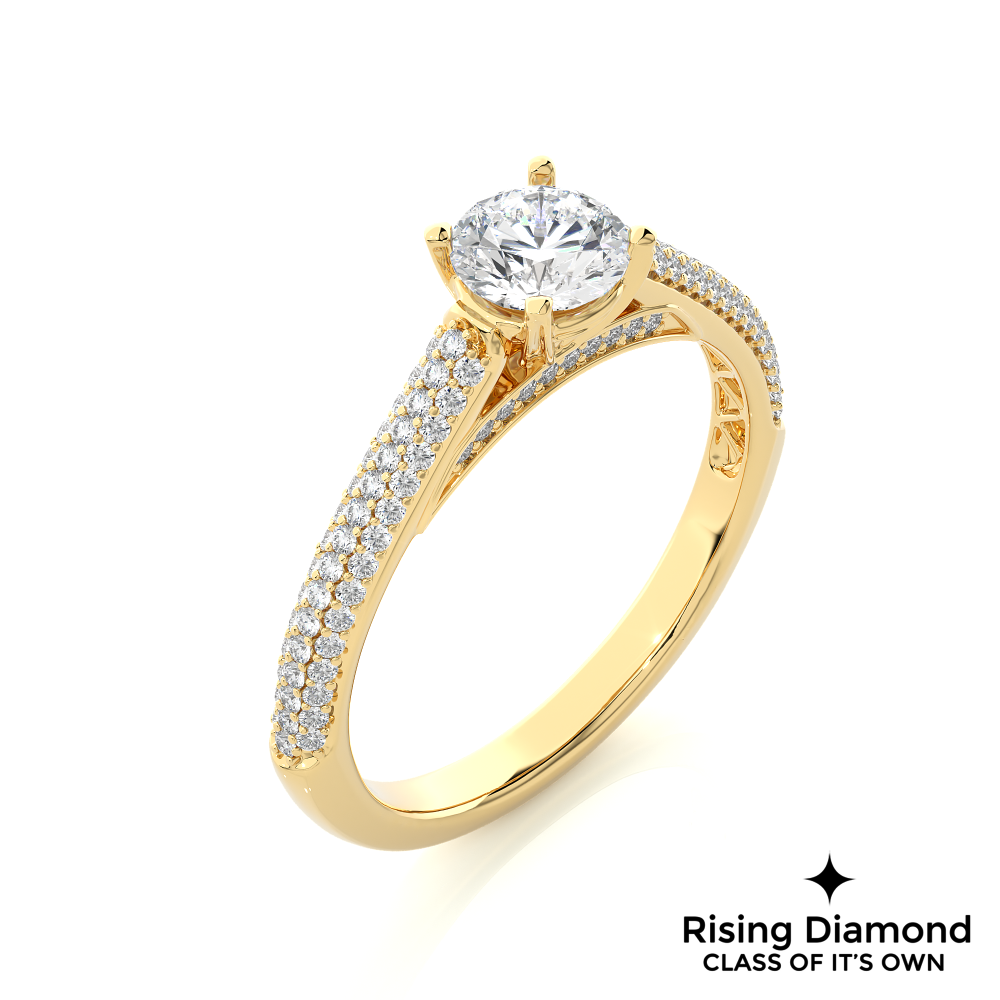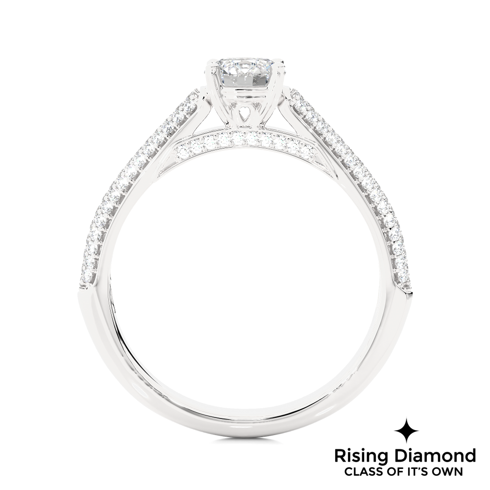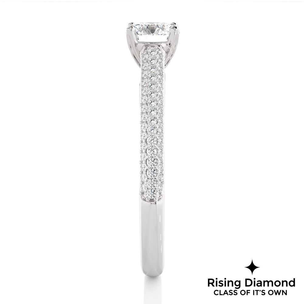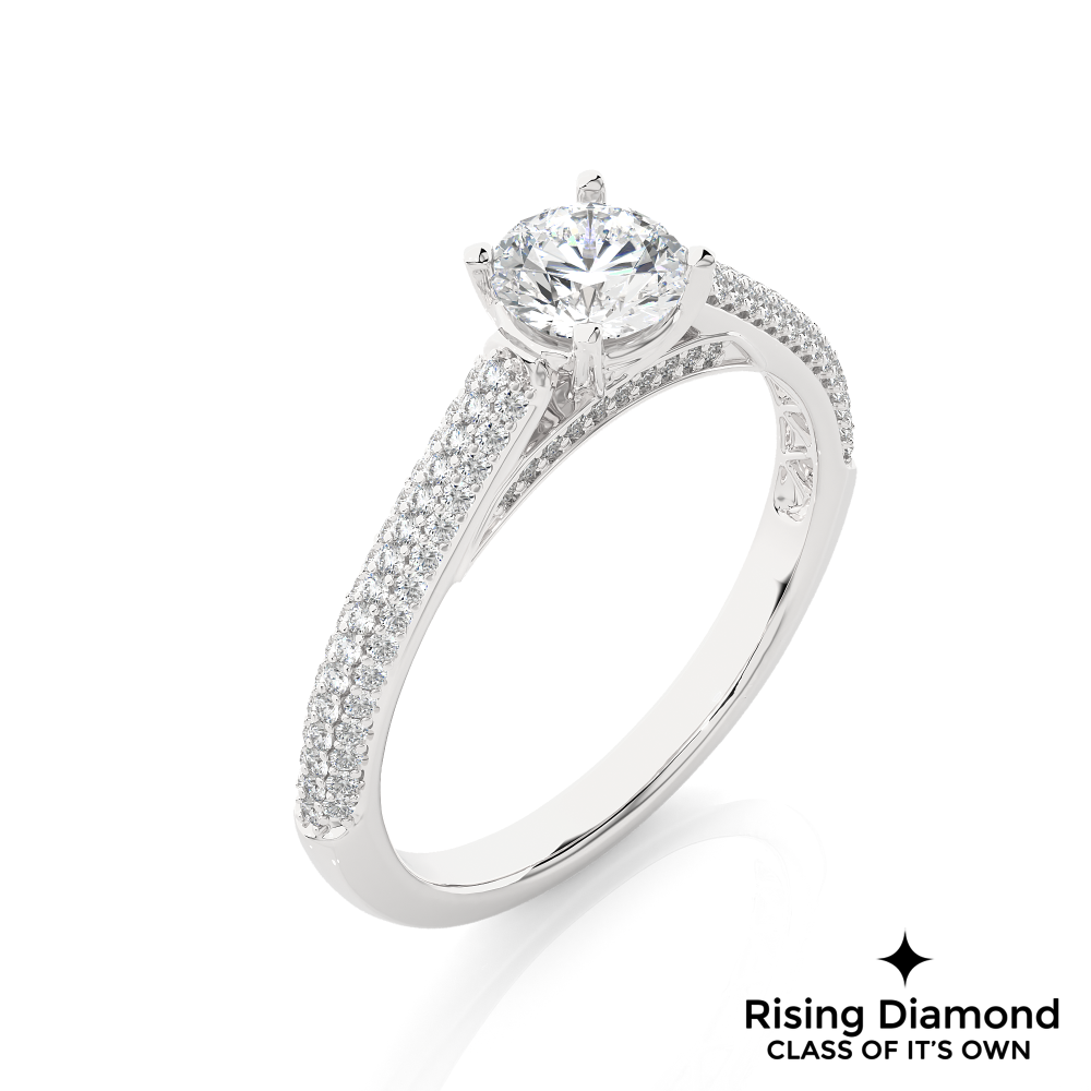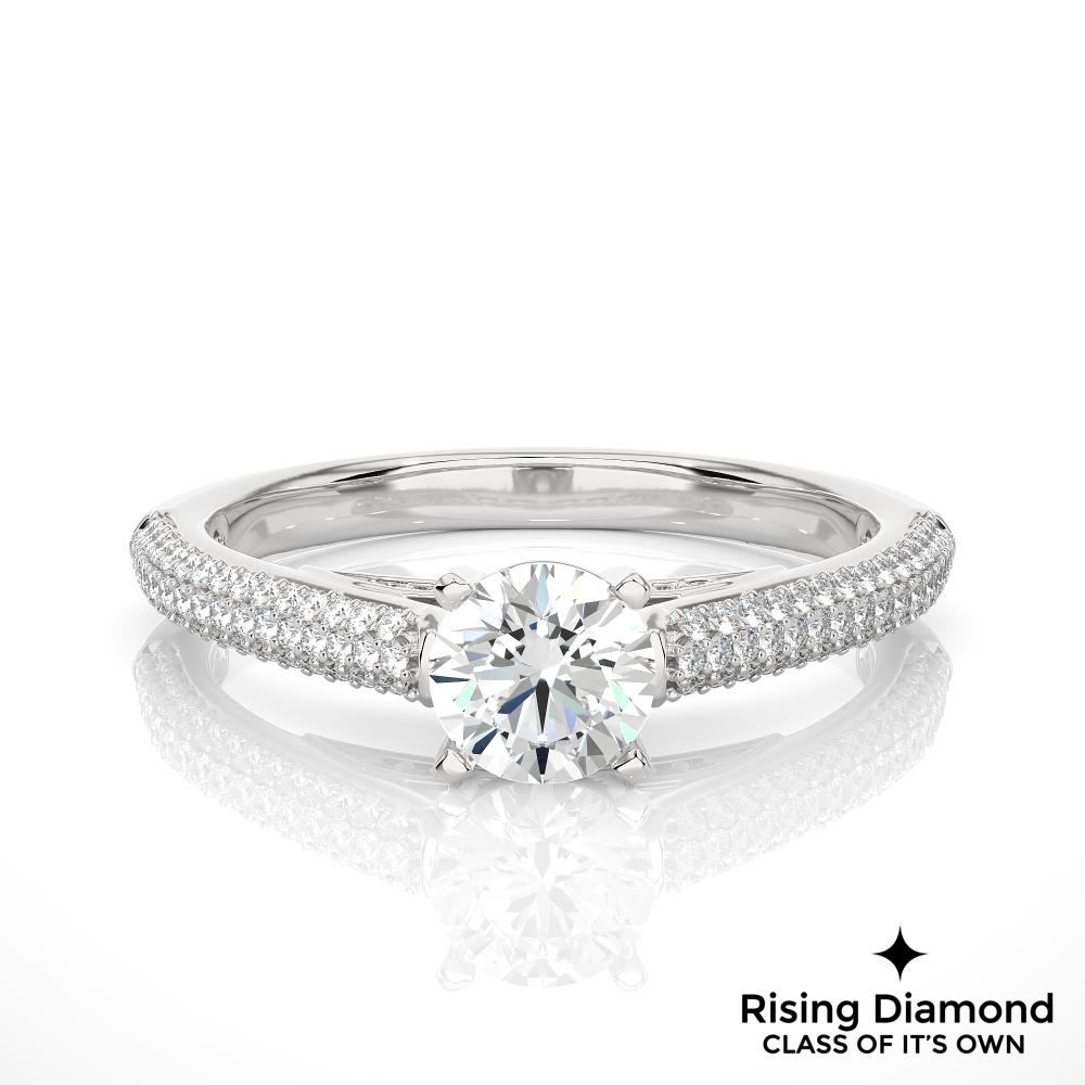 1.02 Ct Round Cut Colorless Moissanite Engagement Ring in Micro Pave Setting