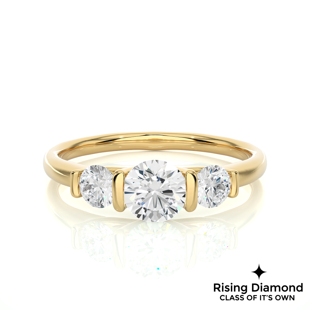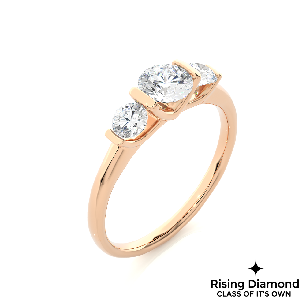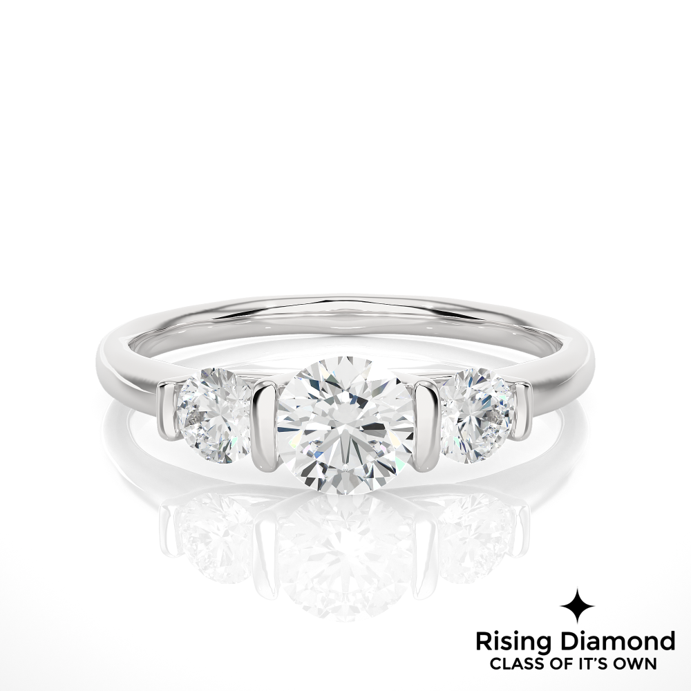 1.01 Ct Round Cut E-VS1 Lab Grown Diamond Three Stone Engagement Ring