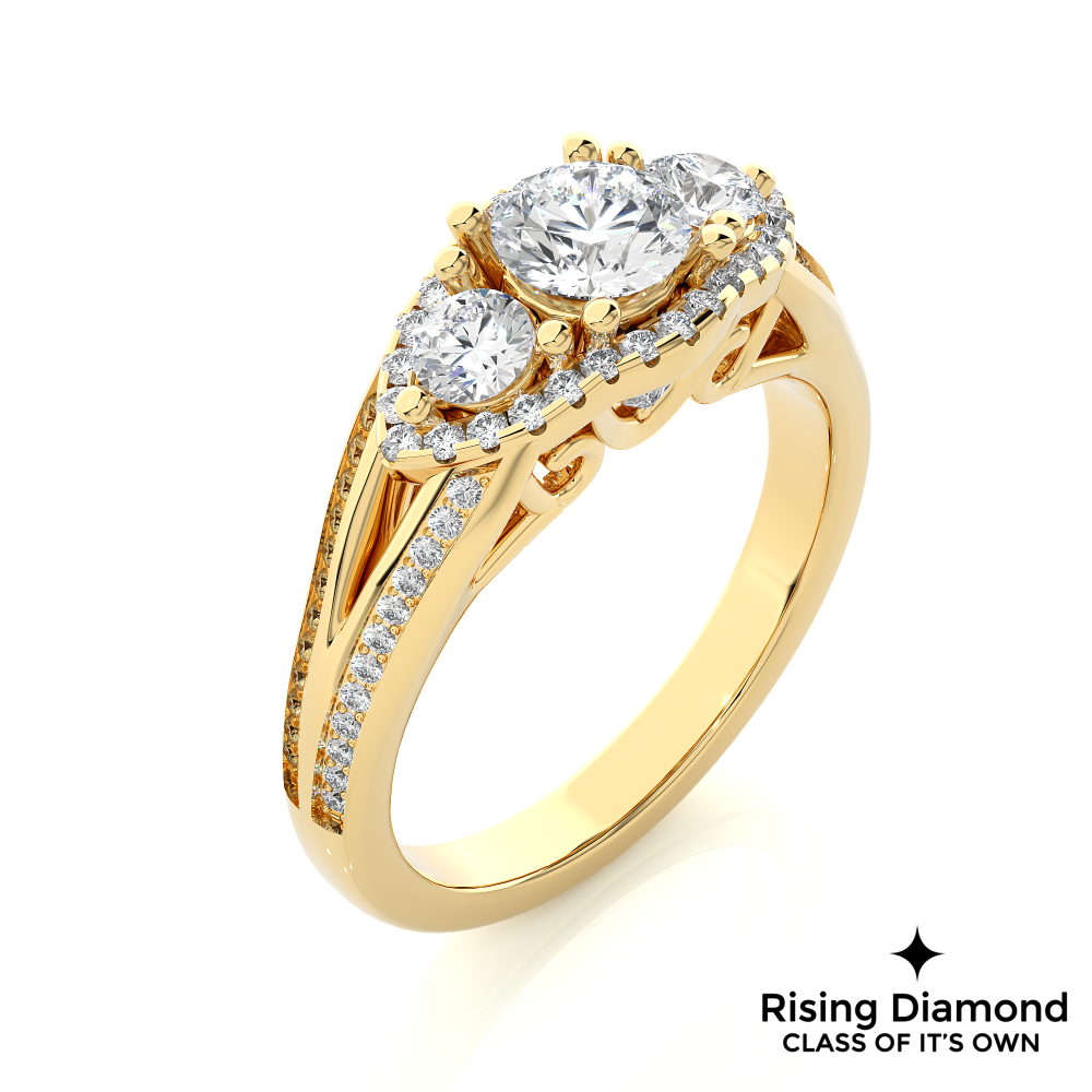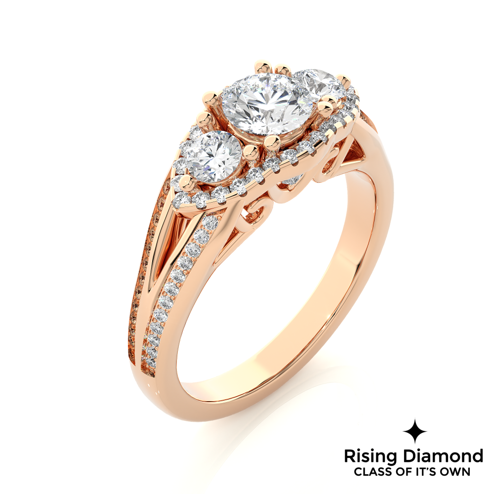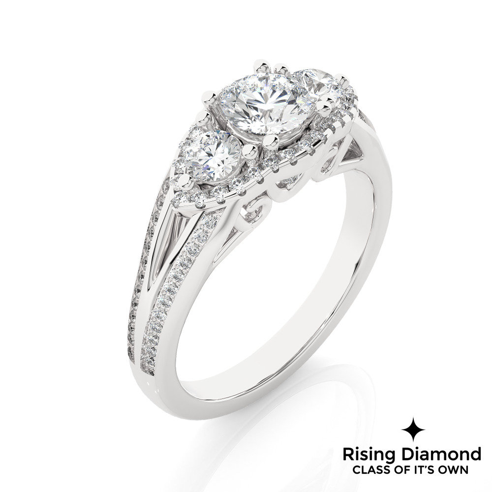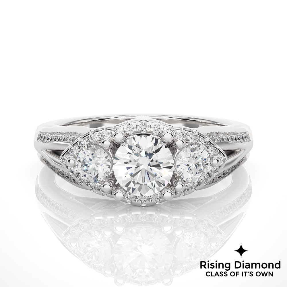 1.03 Ct Round Cut E-VS2 Lab Grown Diamond Three Stone Engagement Ring