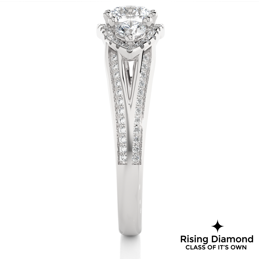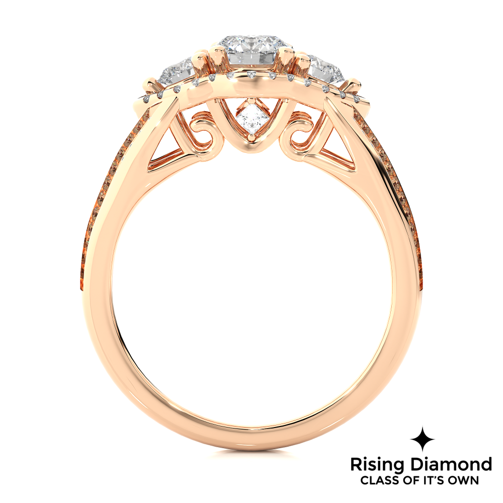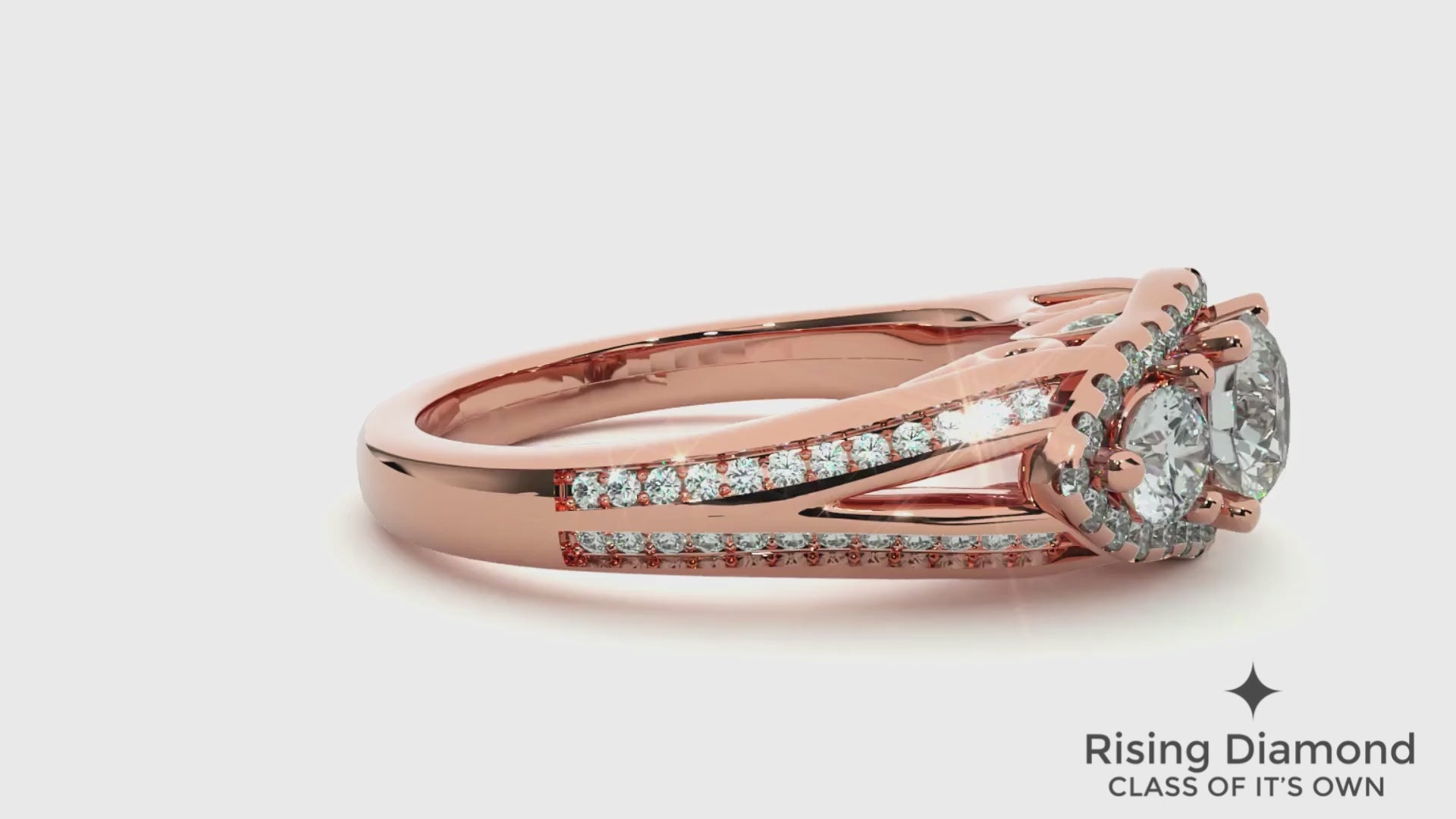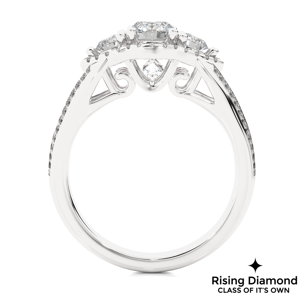 1.03 Ct Round Cut E-VS2 Lab Grown Diamond Three Stone Engagement Ring