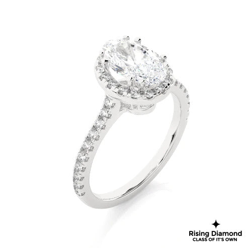 1.05 Ct Oval Cut E-VS1 Lab Grown Diamond Halo Engagement Ring