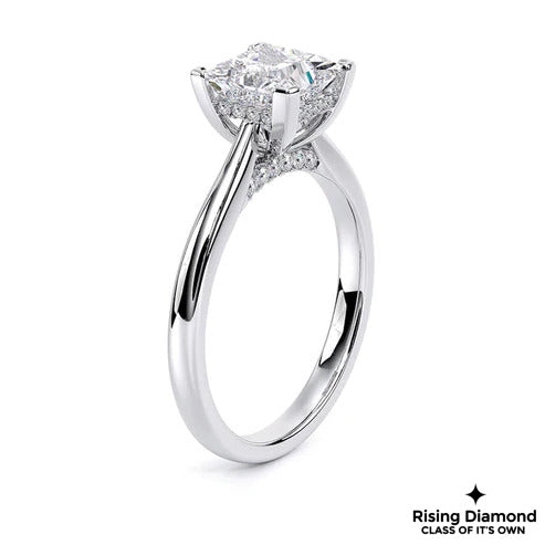1.08 Ct Princess Cut F-VS1 Lab Grown Diamond Hidden Halo Engagement Ring