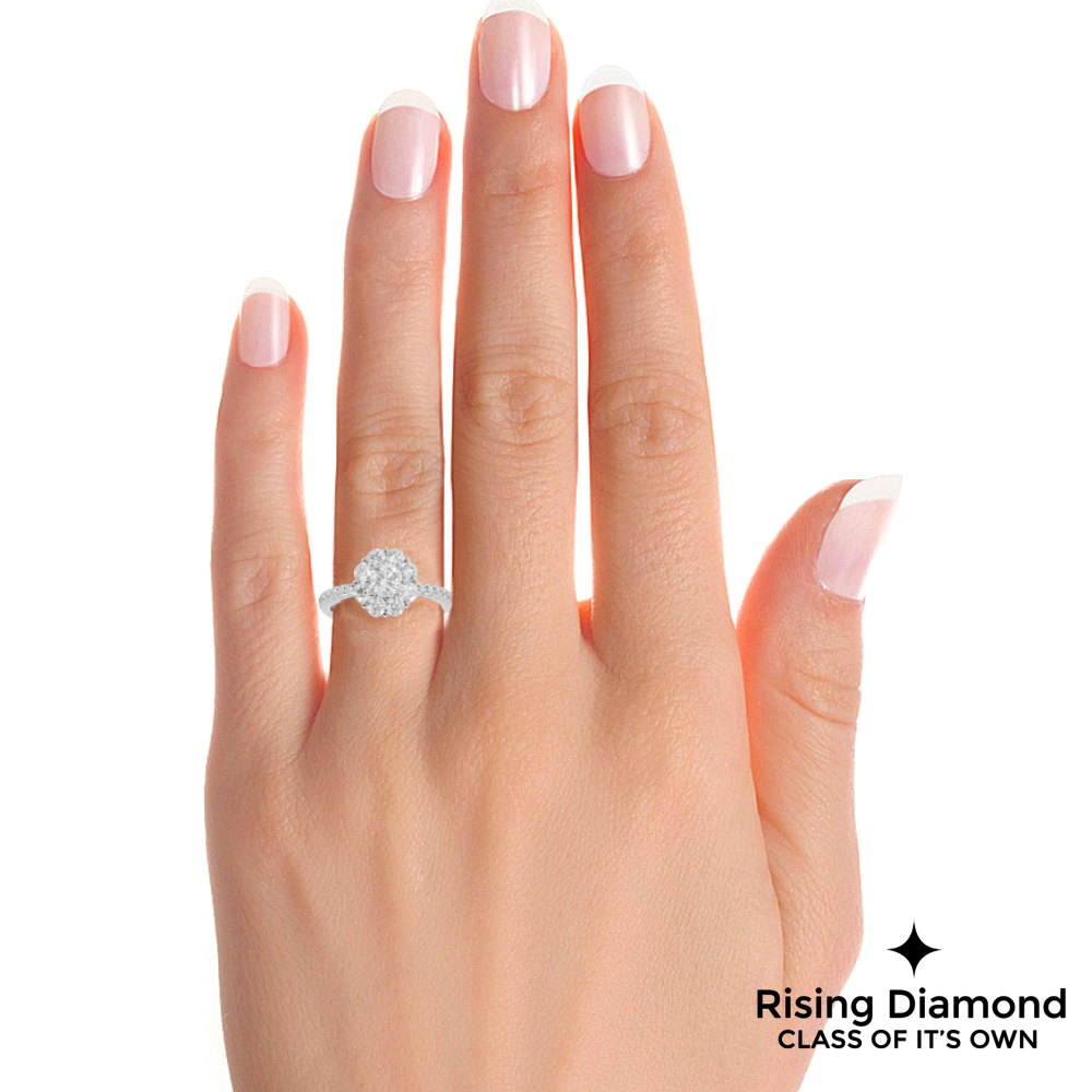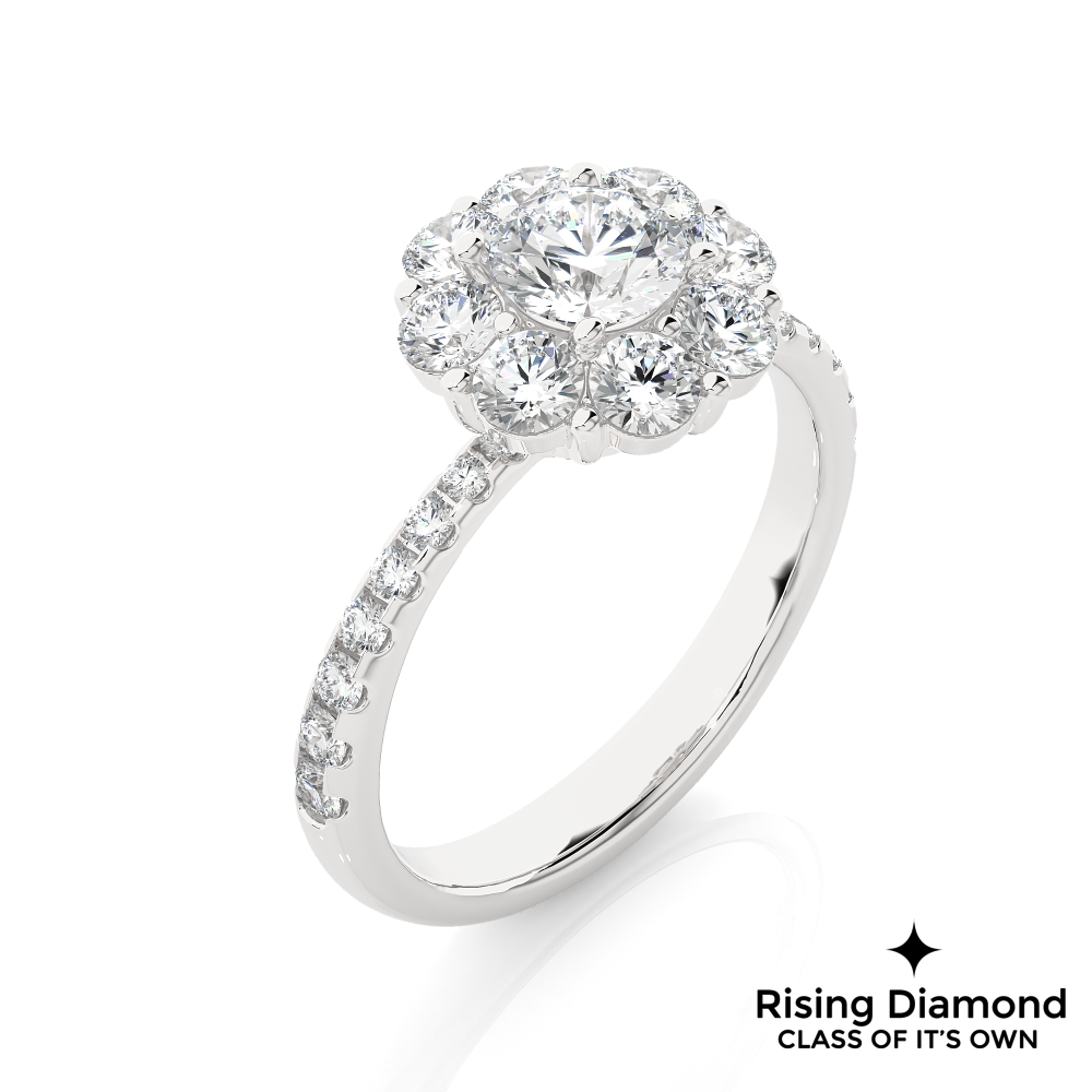 1.09 Ct Round Cut E-VS1 Lab Grown Diamond Halo Engagement Ring