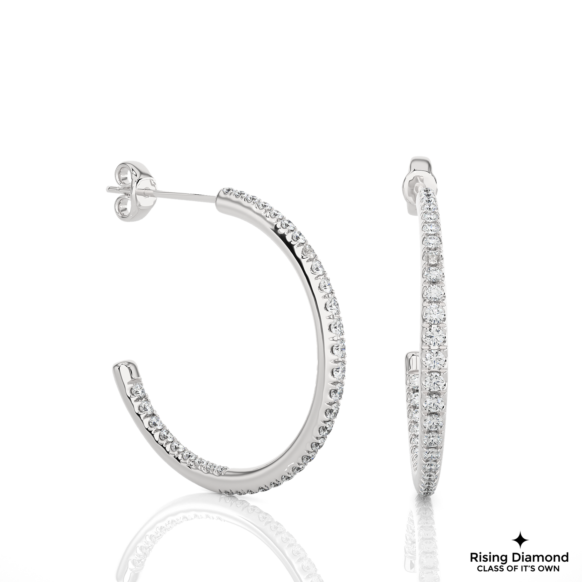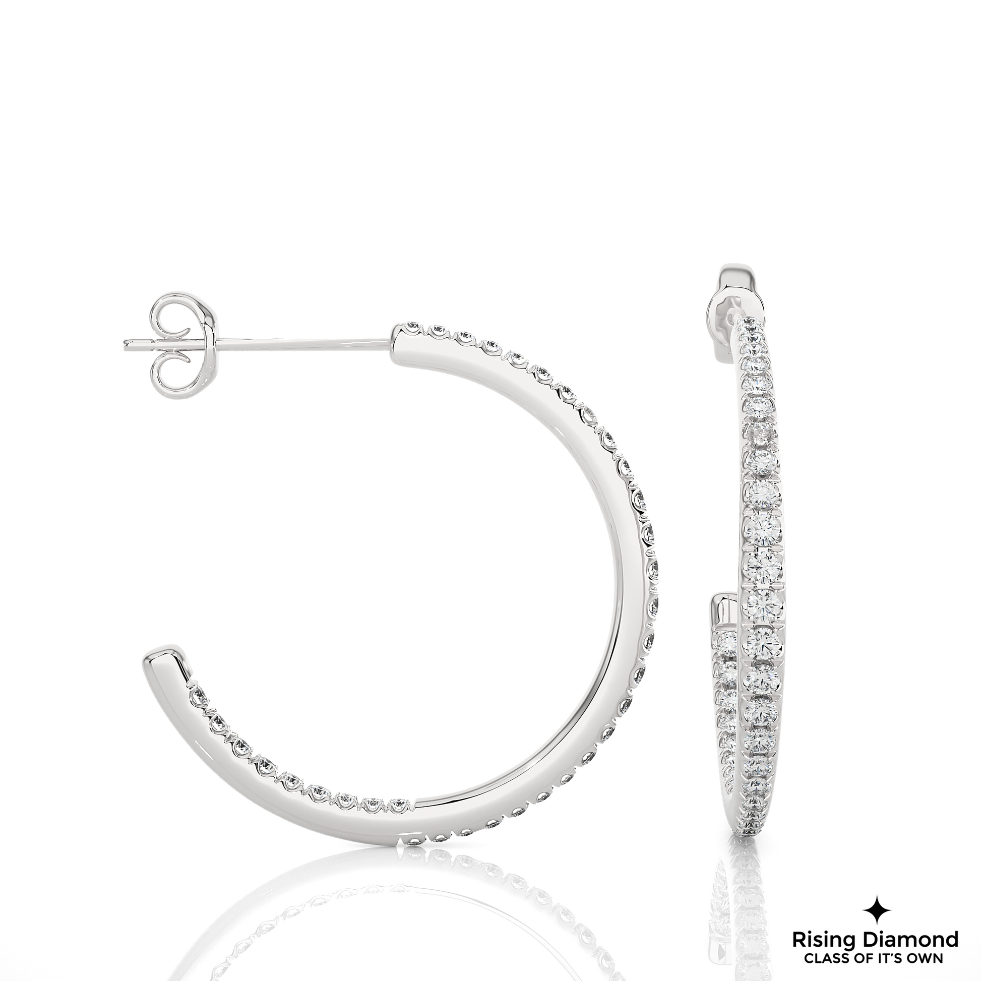 1.02 CTW Round Cut Lab Grown Diamond Hoop Earring With Screw Back Closer
