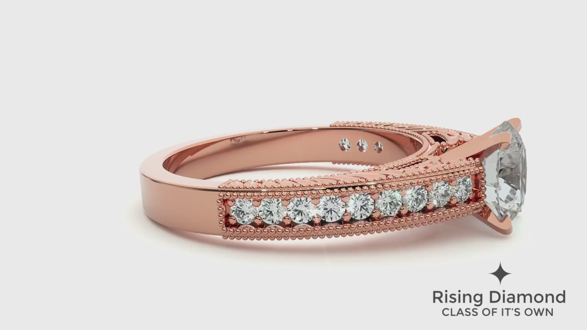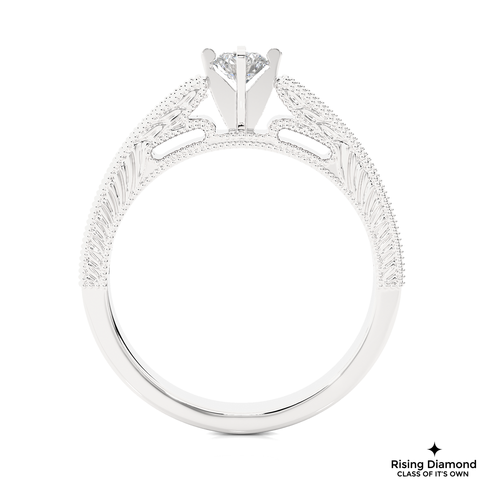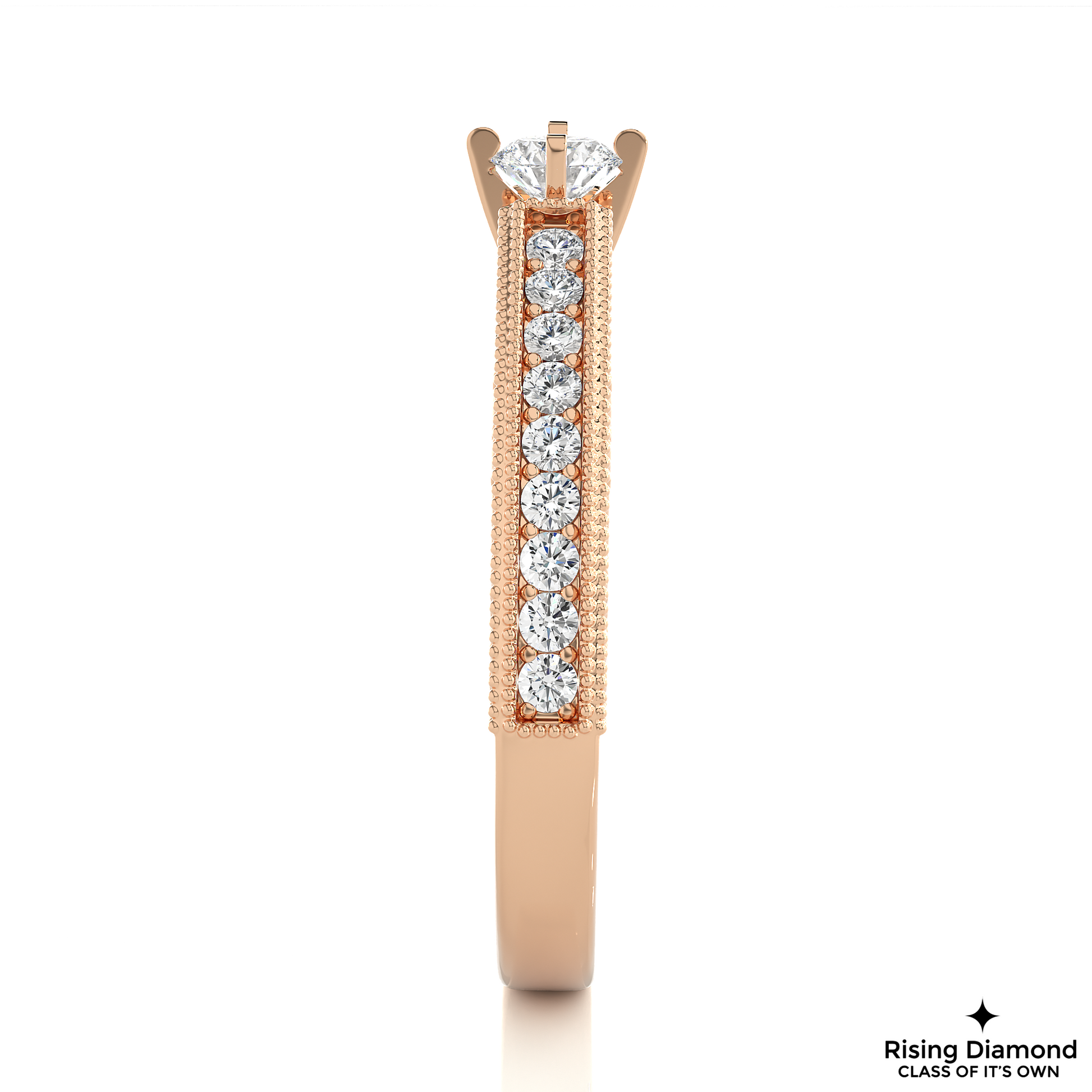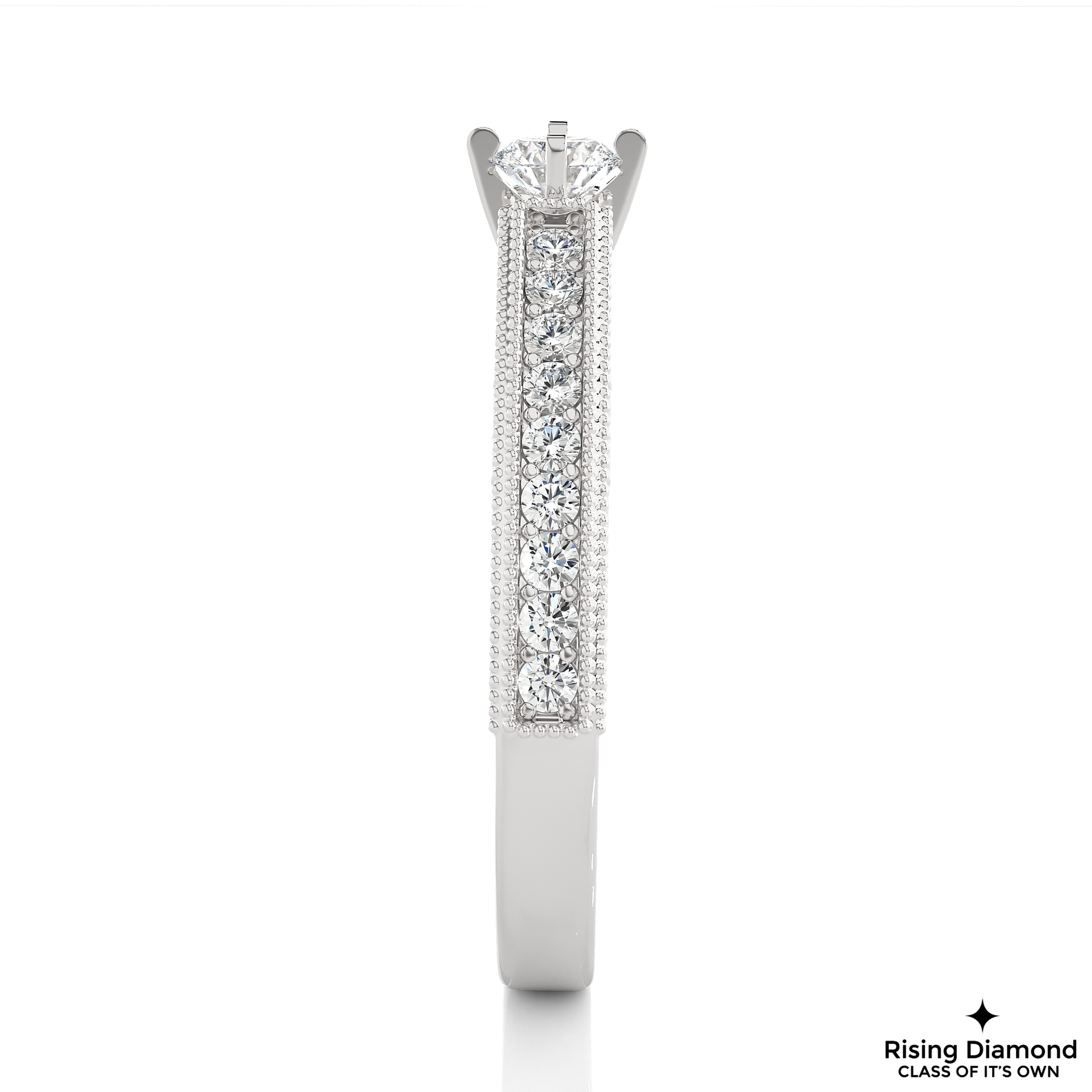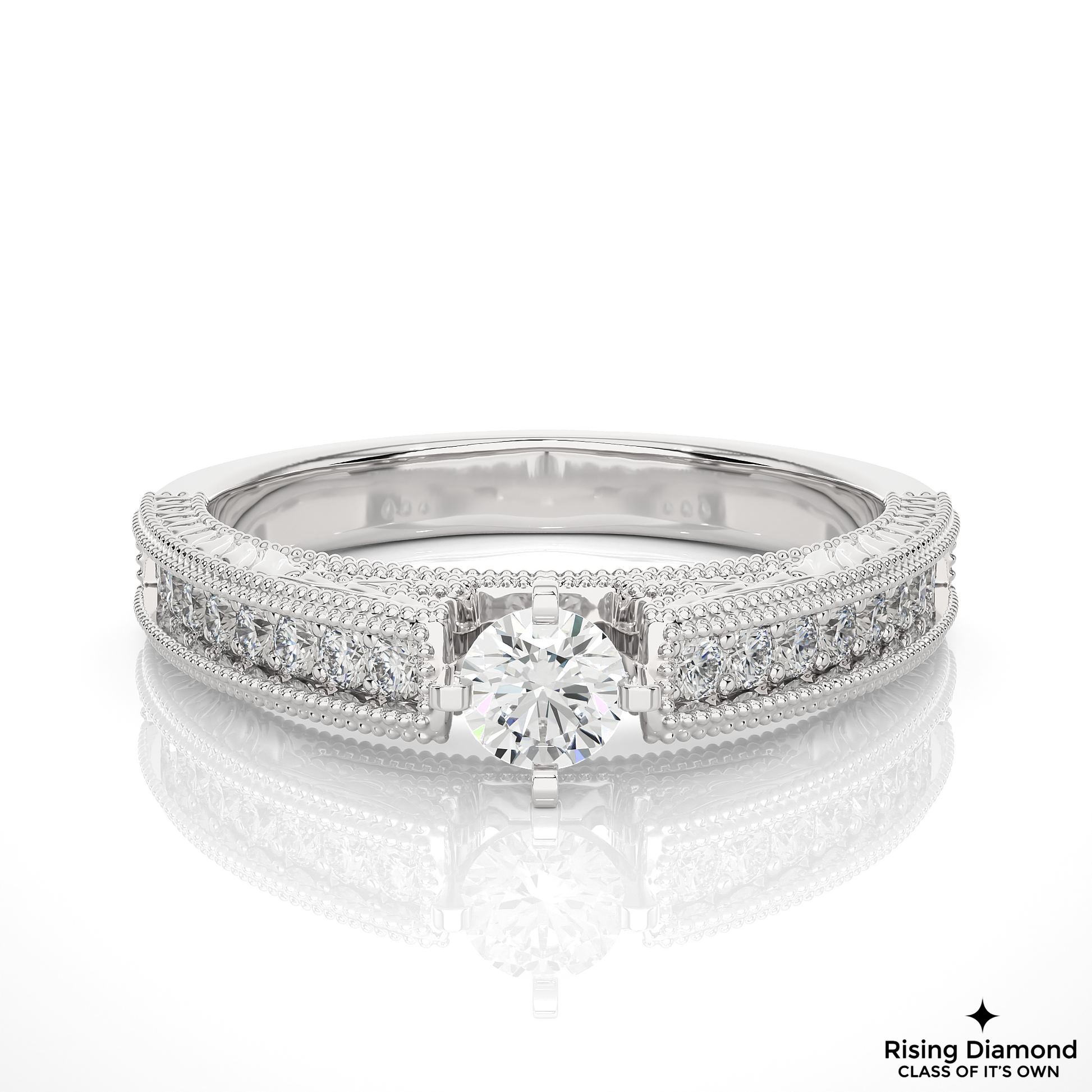 1.01 CT Round Cut Lab Grown Diamond Engagement Ring With Chanel Setting in mil-Grain Shank