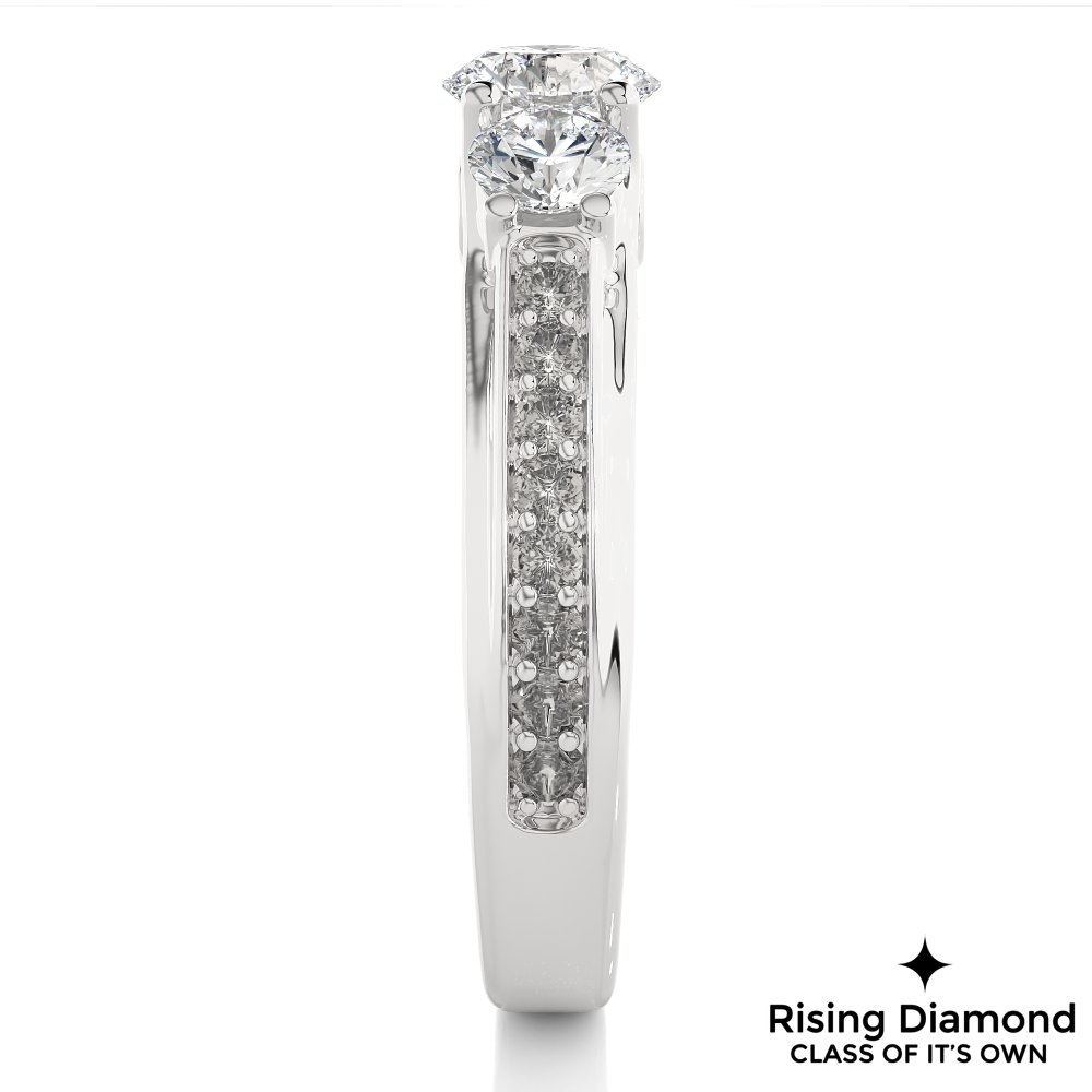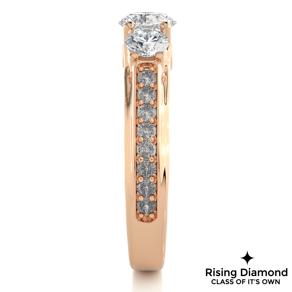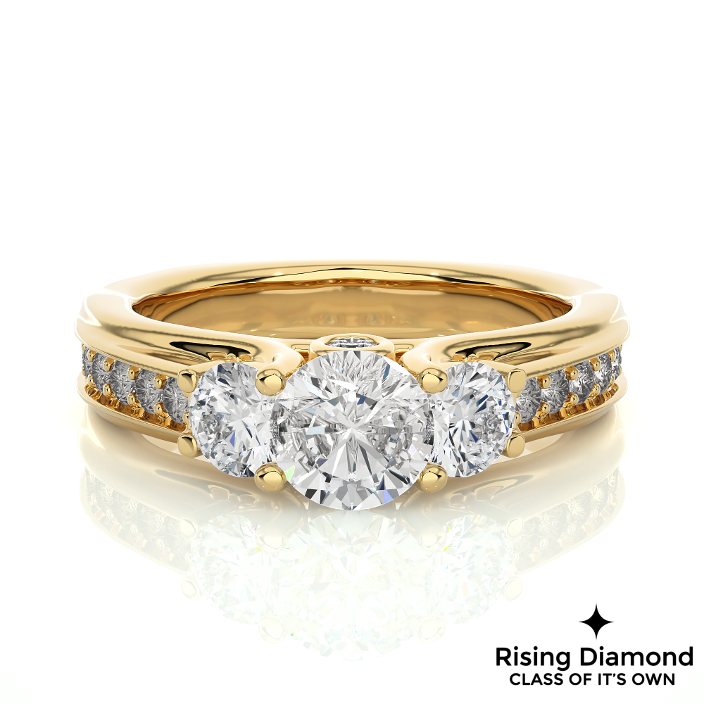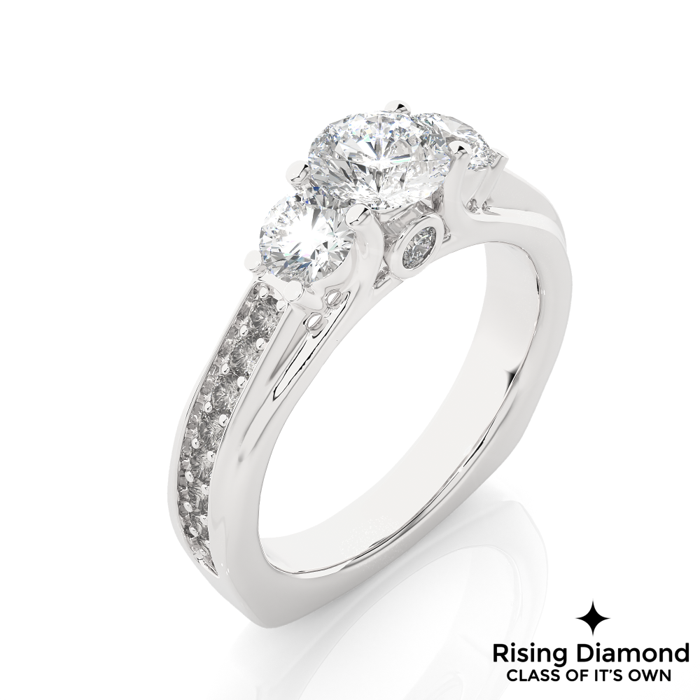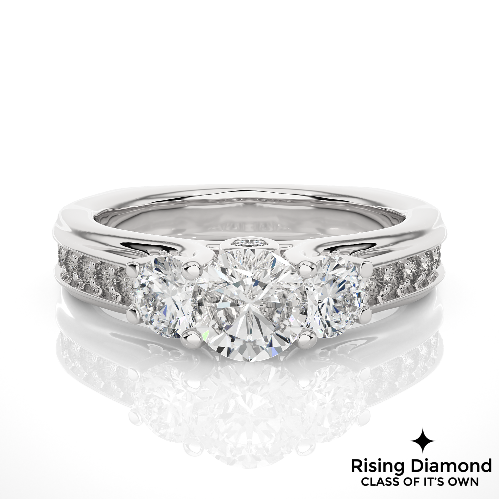 1.23 Ct Round Cut E-VS2 Lab Grown Diamond Three Stone Engagement Ring