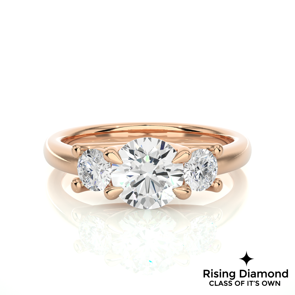 1.48 Ct Round Cut Colorless Moissanite Three Stone Engagement Ring