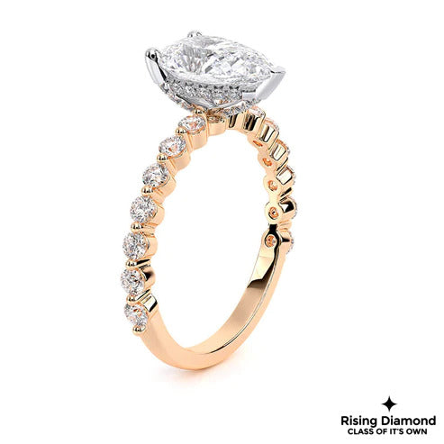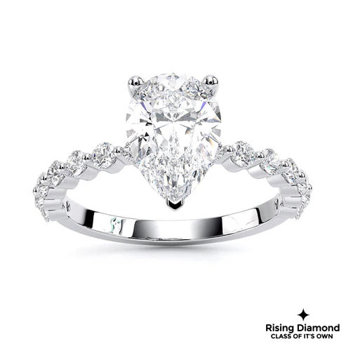 1.5 Ct Pear Cut F-VS2 Lab Grown Diamond Engagement Ring in Mil Grain Shank