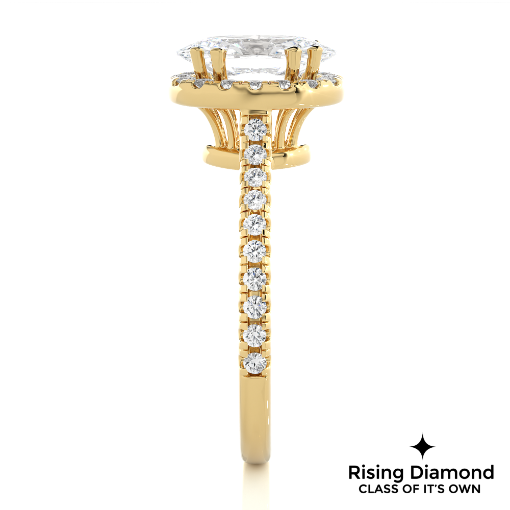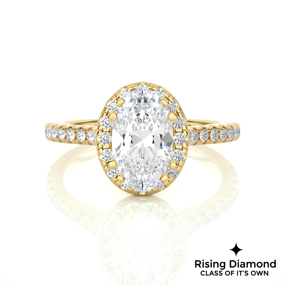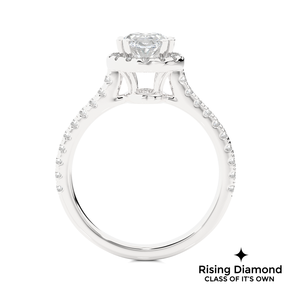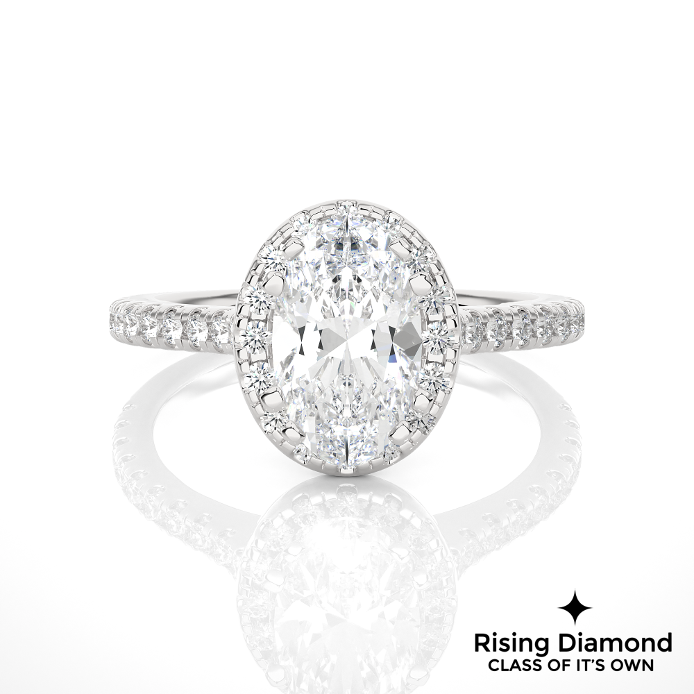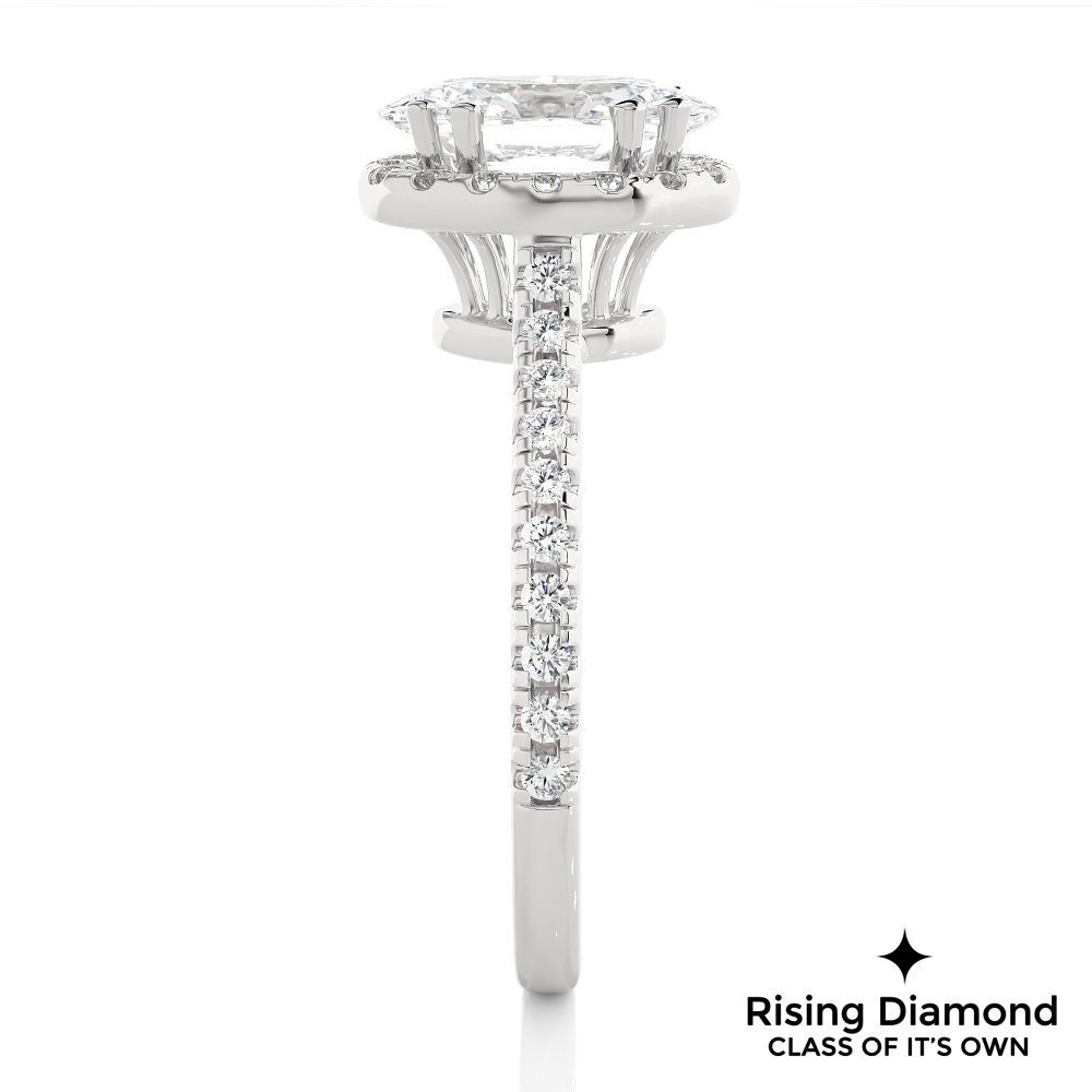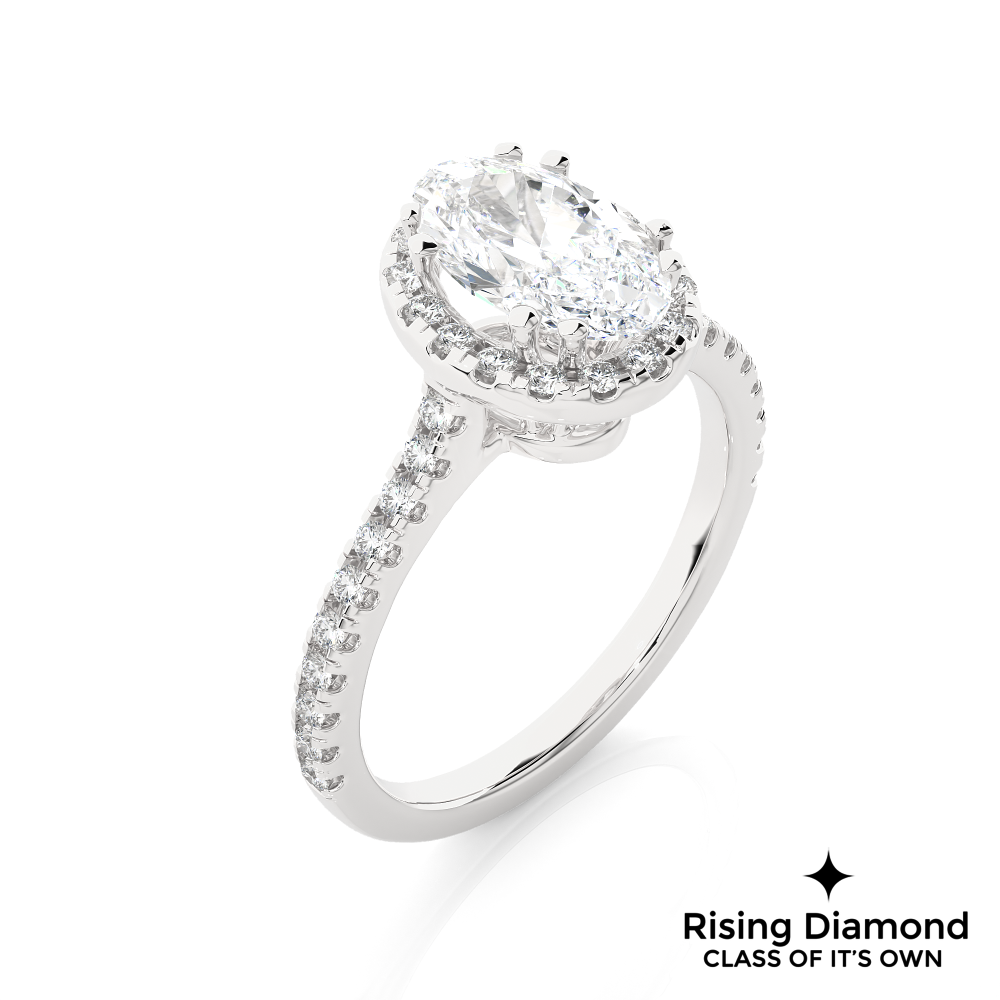 1.55 Ct Oval Cut Colorless Moissanite Engagement Ring in Halo Setting With Cathedral Shank