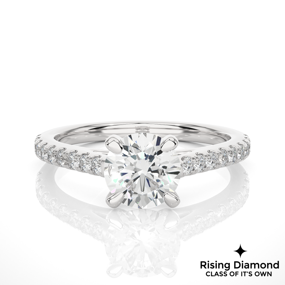 1.58 Ct Round Cut Colorless Moissanite Pave Engagement Ring