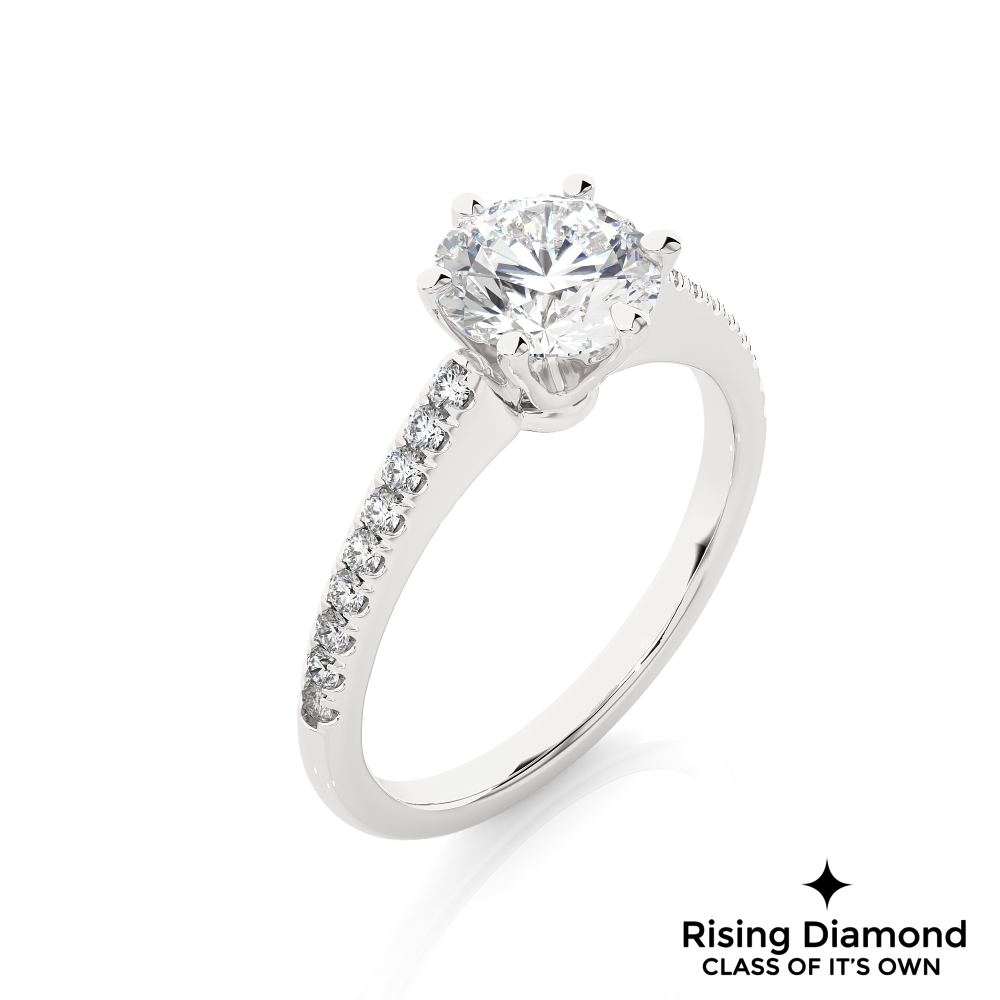 1.79 Ct Round Cut Colorless Moissanite Six Prong Engagement Ring