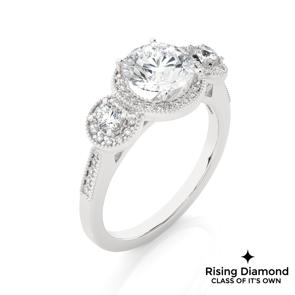 1.79 Ct Round Cut Colorless Moissanite Three Stone Gold Engagement Ring