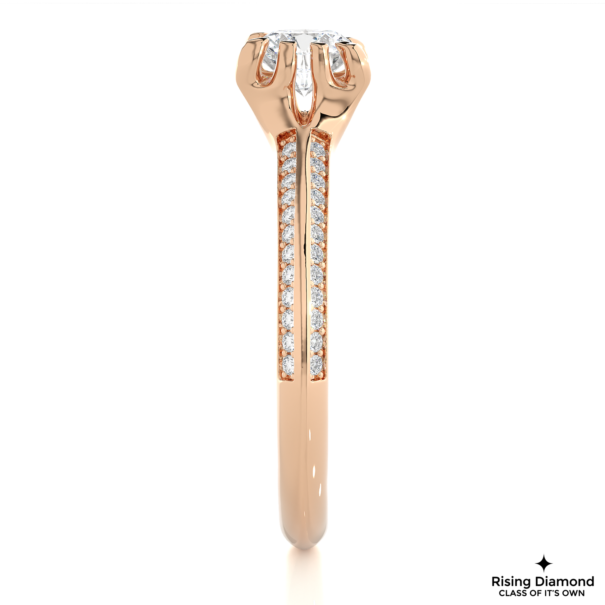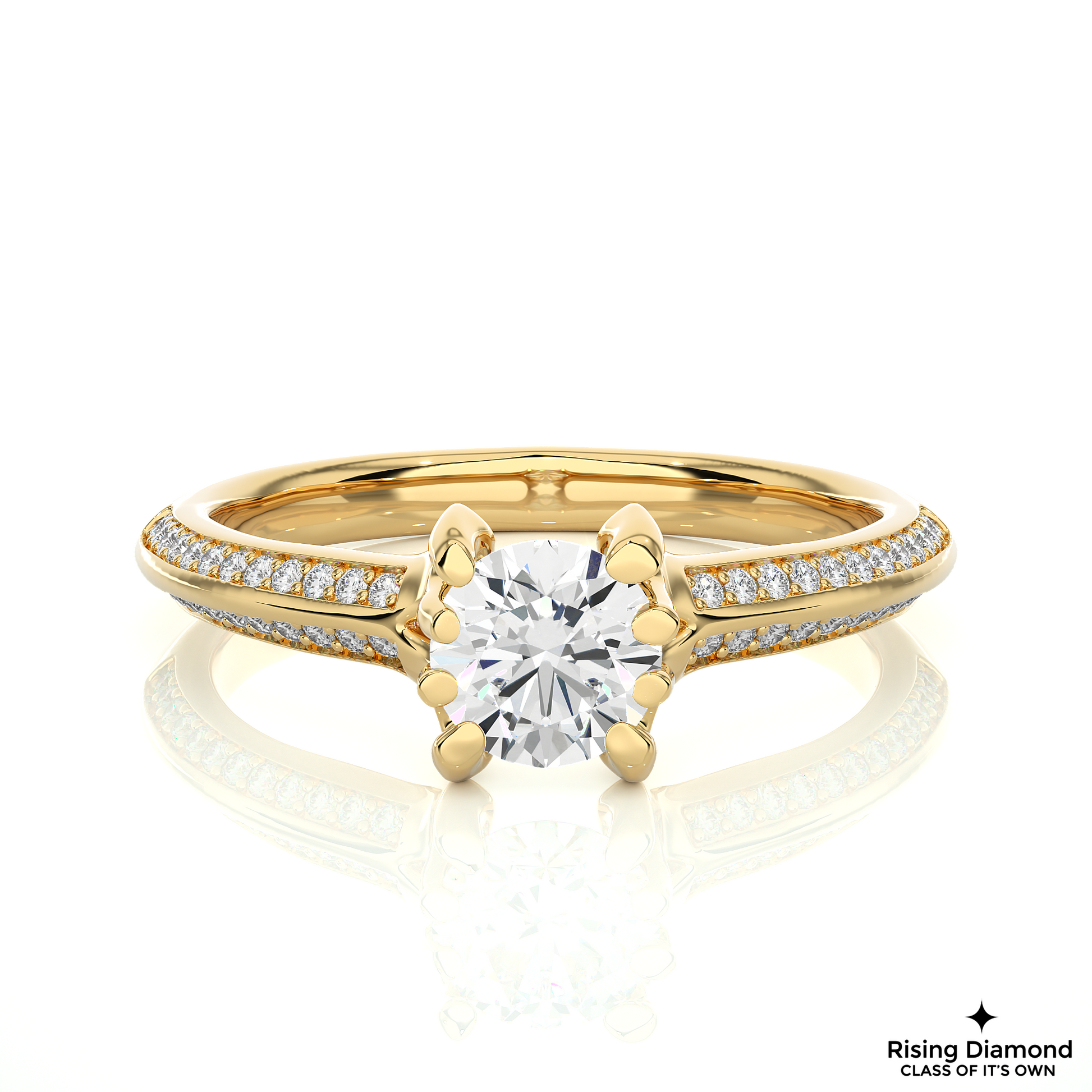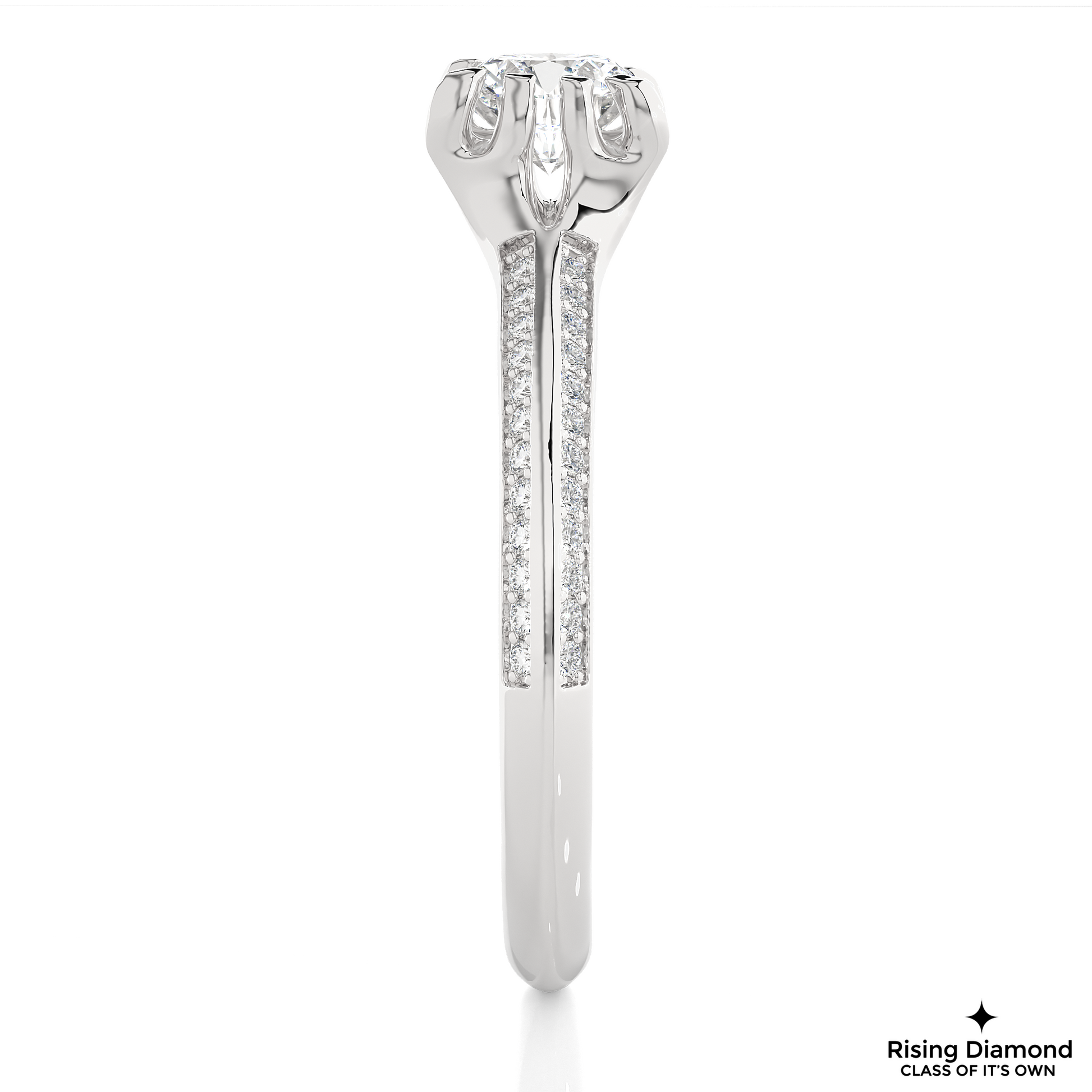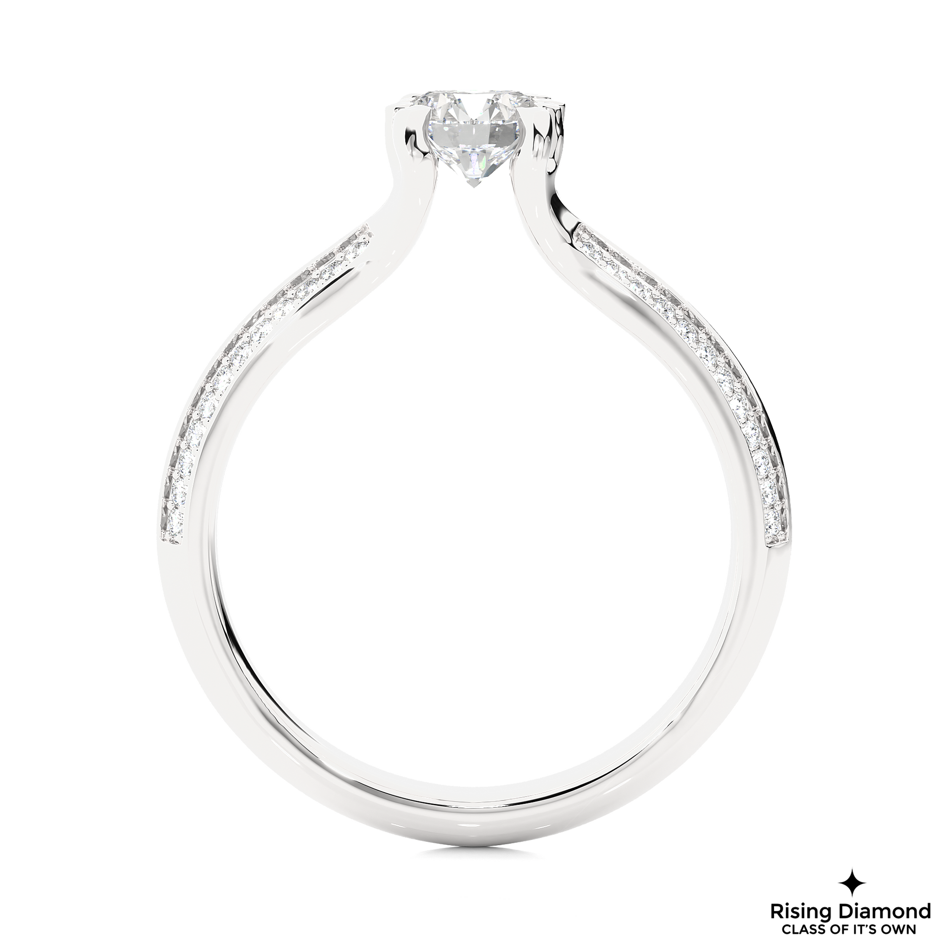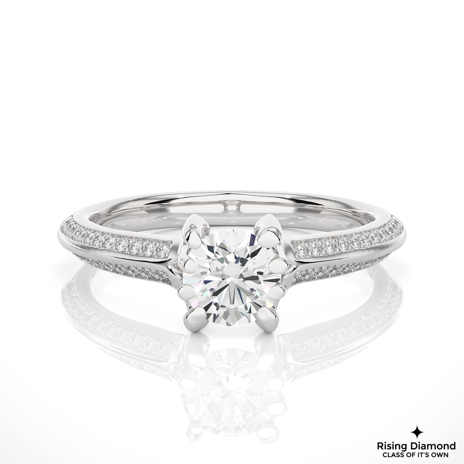 1.02 CT Round Cut Lab Grown Diamond Engagement Ring in Knife Edge Shank With Pave Setting