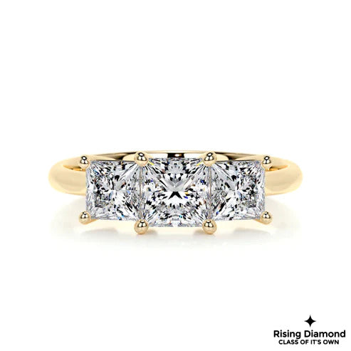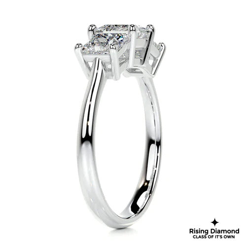 3.8 CTW Princess Cut Colorless Moissanite Three Stone Ring