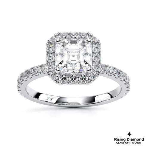 1.20 Ct Asscher Cut G/VS2 Lab Grown Diamond Halo Ring