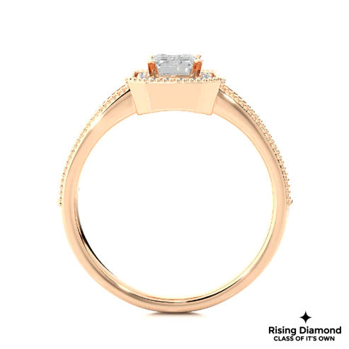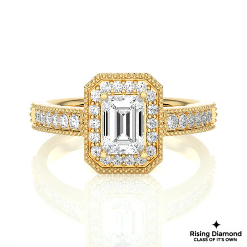 1.22 Ct Emerald Cut F-VS1 Lab Grown Diamond Halo Gold Engagement Ring