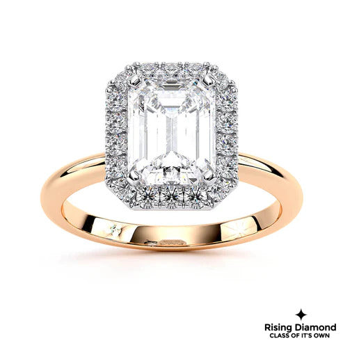 1.5 Ct Emerald Cut G-VS1 Lab Grown Diamond Halo Gold Engagement Ring
