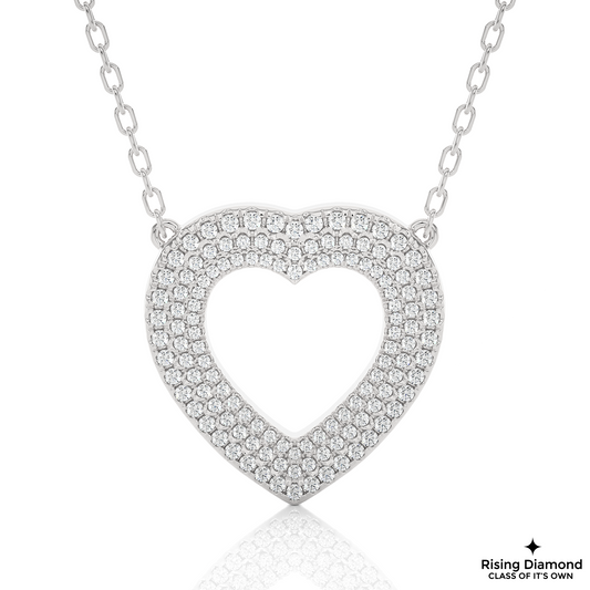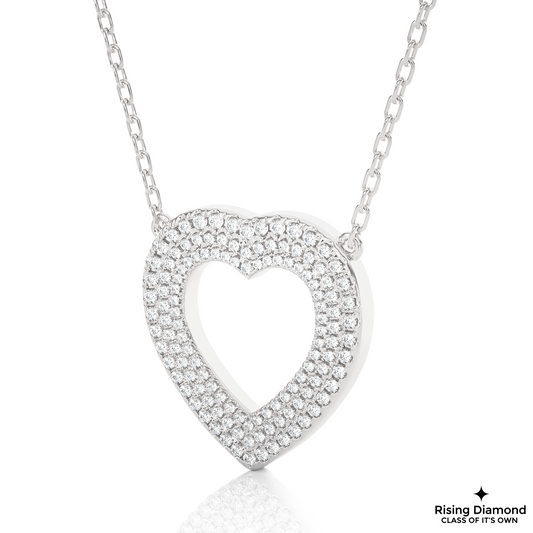 0.73 CTW Round Cut Lab Grown Diamond Heart Shape Micro-pave Necklace