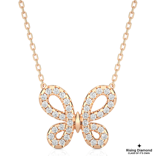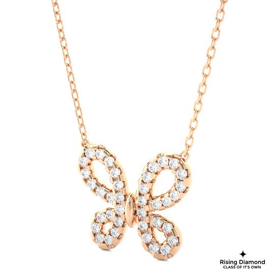 0.35 CTW Round Cut Lab Grown Diamond Butterfly Symbol Necklace