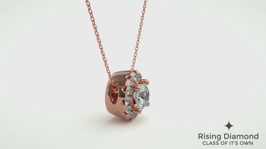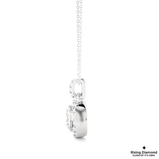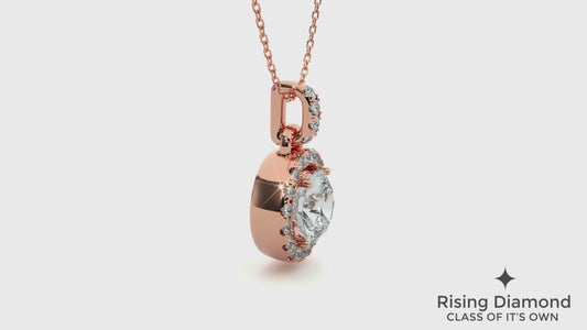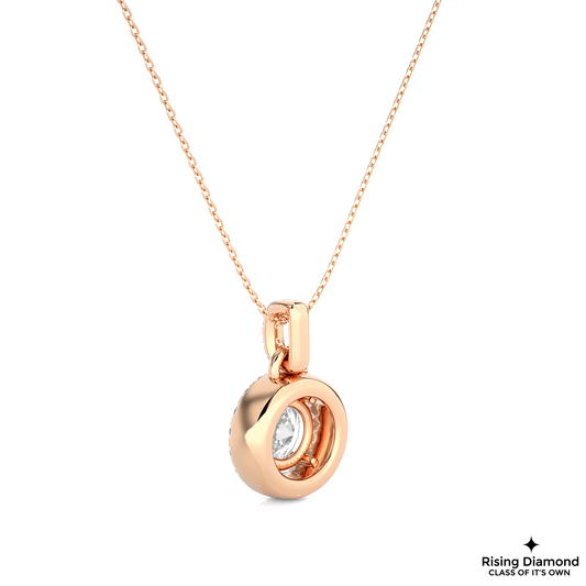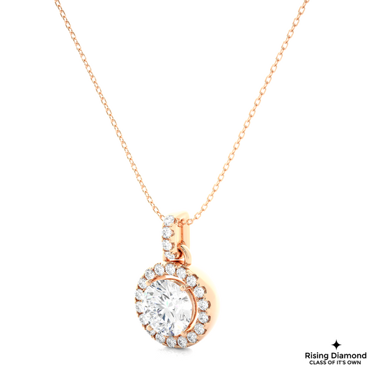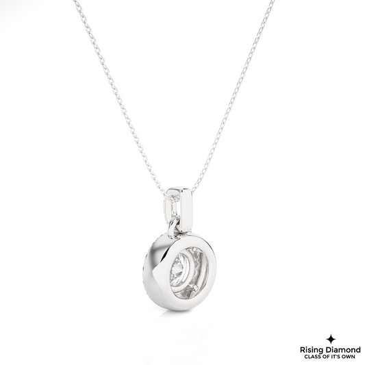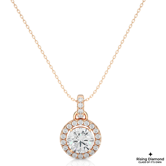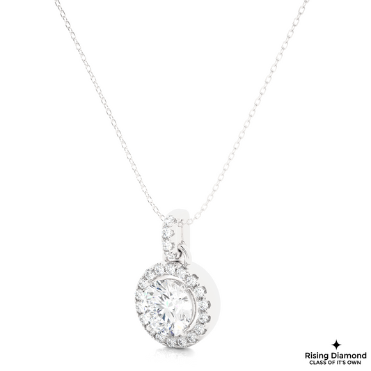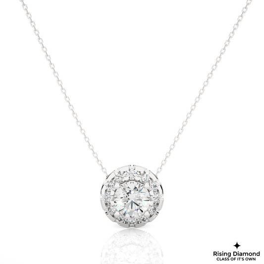 1.02 CT Round Cut Lab Grown Diamond Solitaire Necklace in Halo Setting
