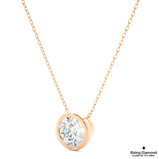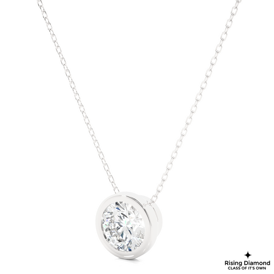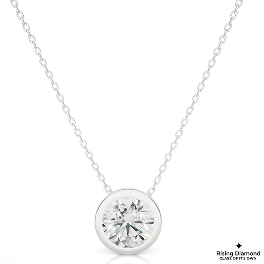 1.08 CT Round Cut Lab Grown Diamond Solitaire Necklace in Bezel Setting
